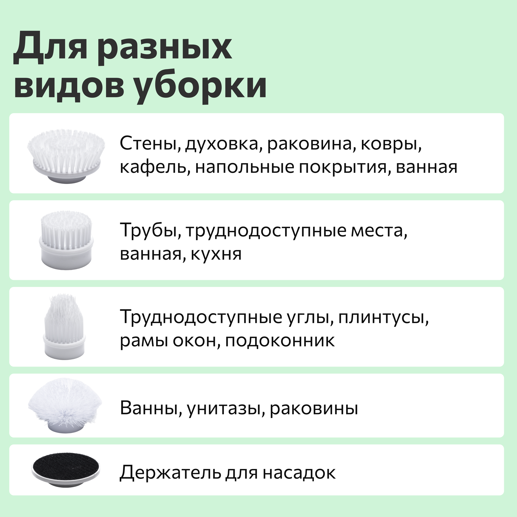 Электрическая щетка Fullbuy для уборки и чистки дома и ванны с набором сменных насадок
