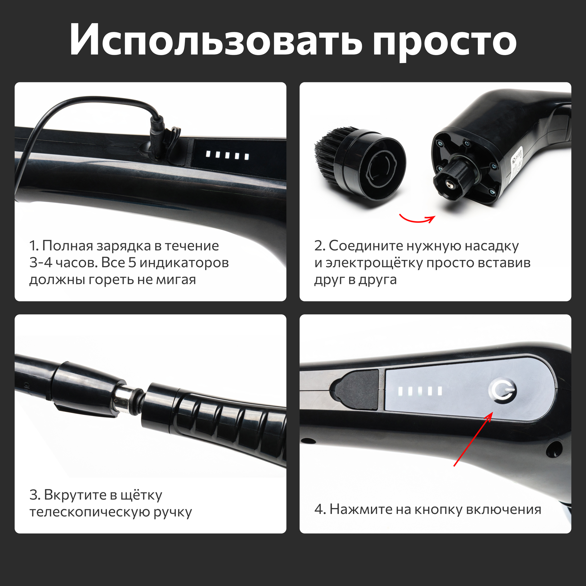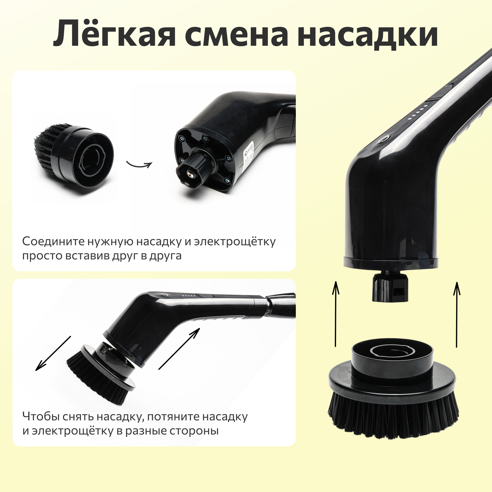 Электрическая щетка для уборки с набором 9 насадок поможет с легкостью убраться дома. Щетка электрическая имеет универсальный держатель - длинная выдвижная ручка