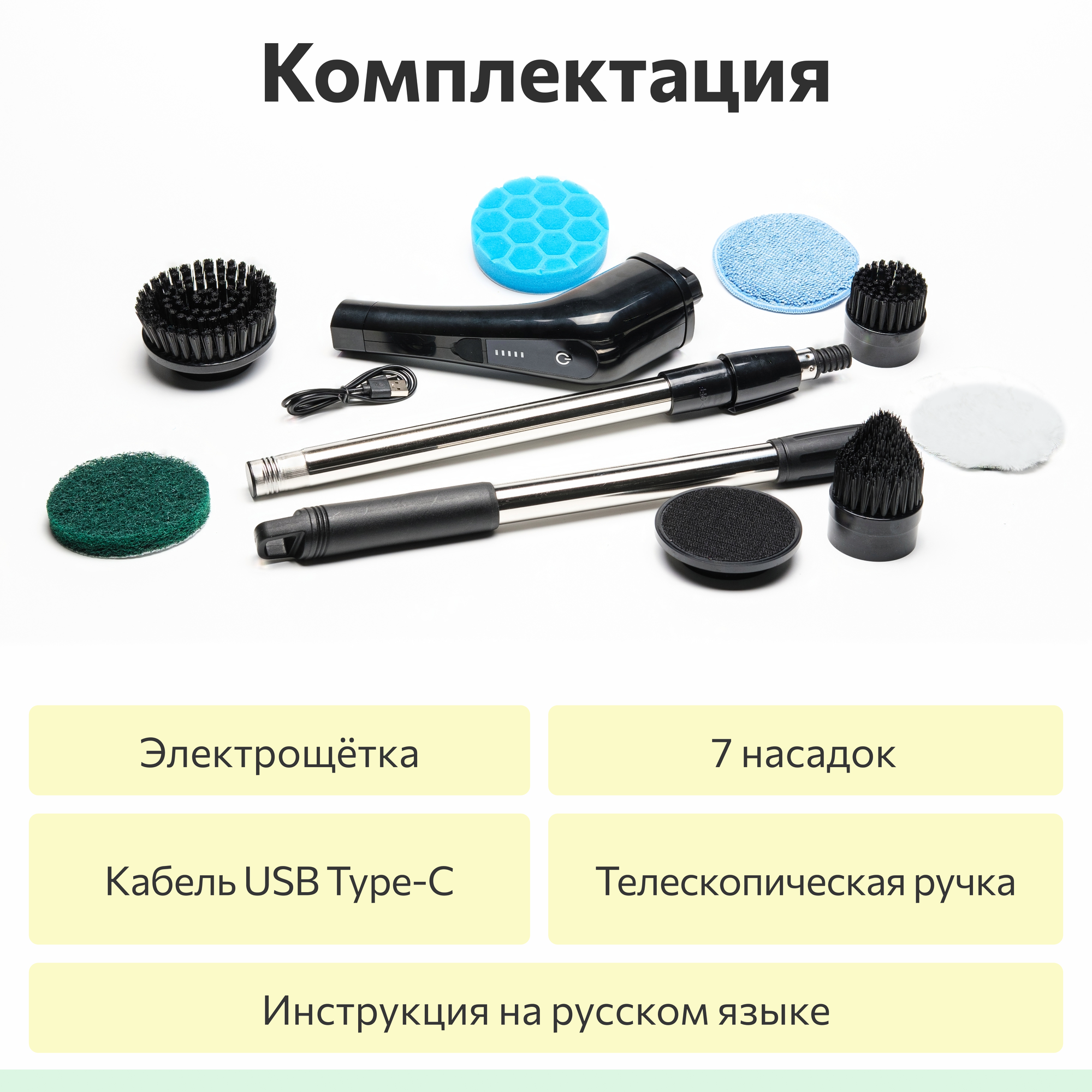Электрическая щётка для уборки со сменными насадками, беспроводная ручная щетка для чистки ванной и дома, в наборе с насадками