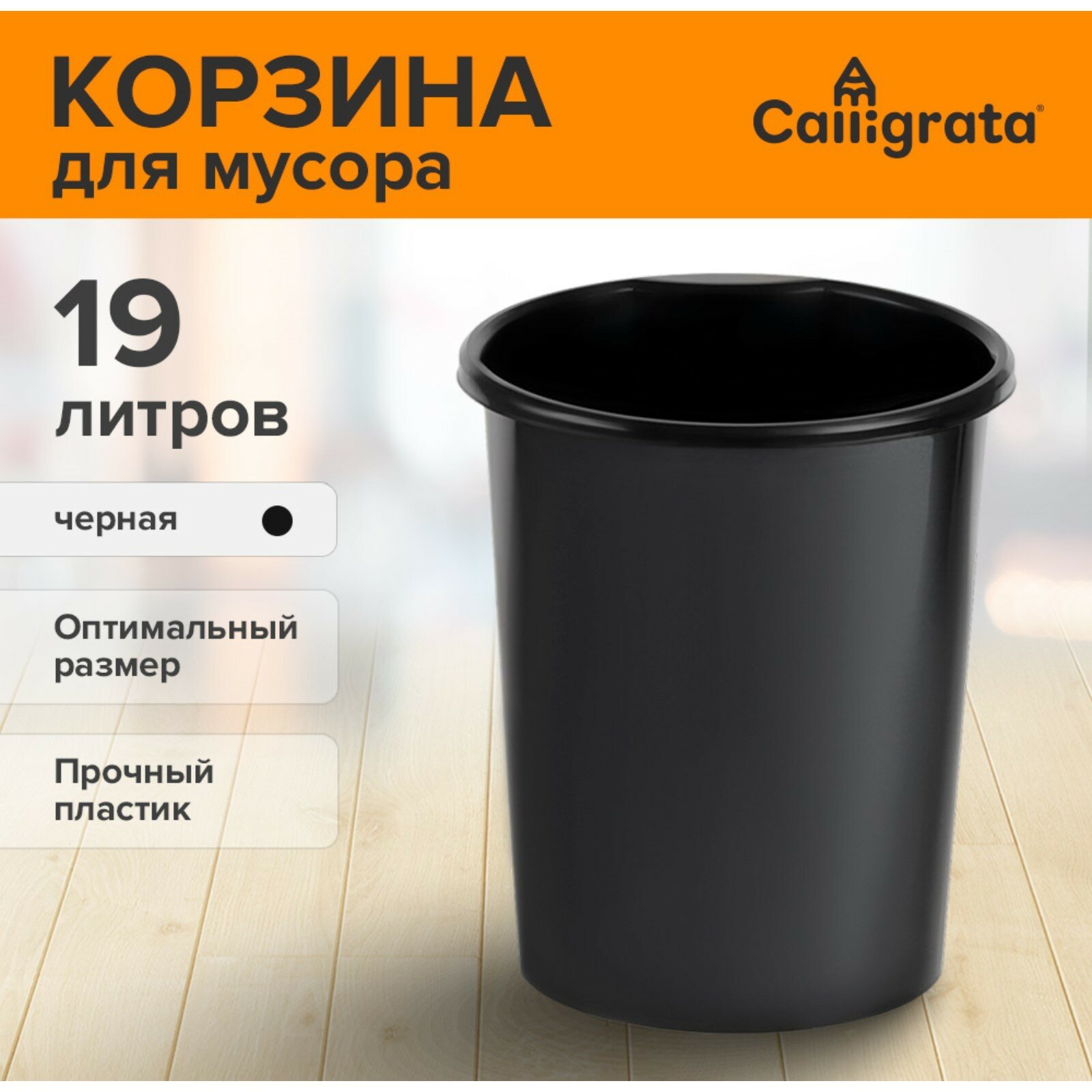 Купить Корзина для бумаг и мусора 19 литров, Сalligrata "Доступный офис", пластик, сплошная, черная