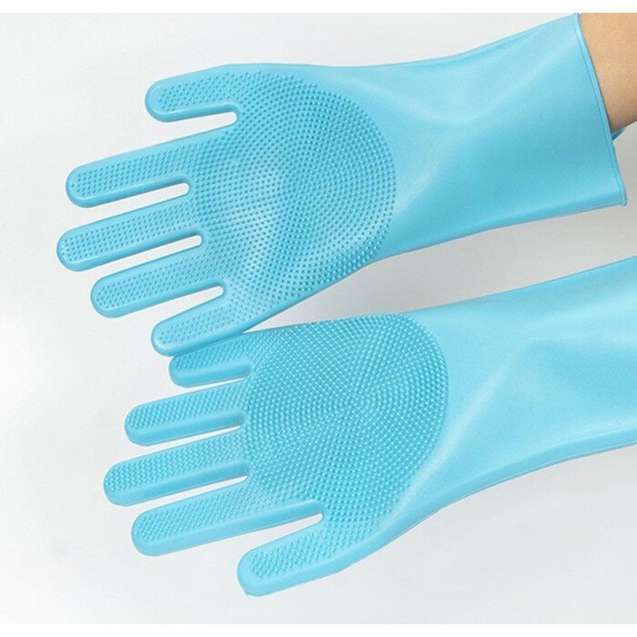Купить Перчатки хозяйственные силиконовые Доляна, 100 г, 28×14 см, цвет бирюзовый