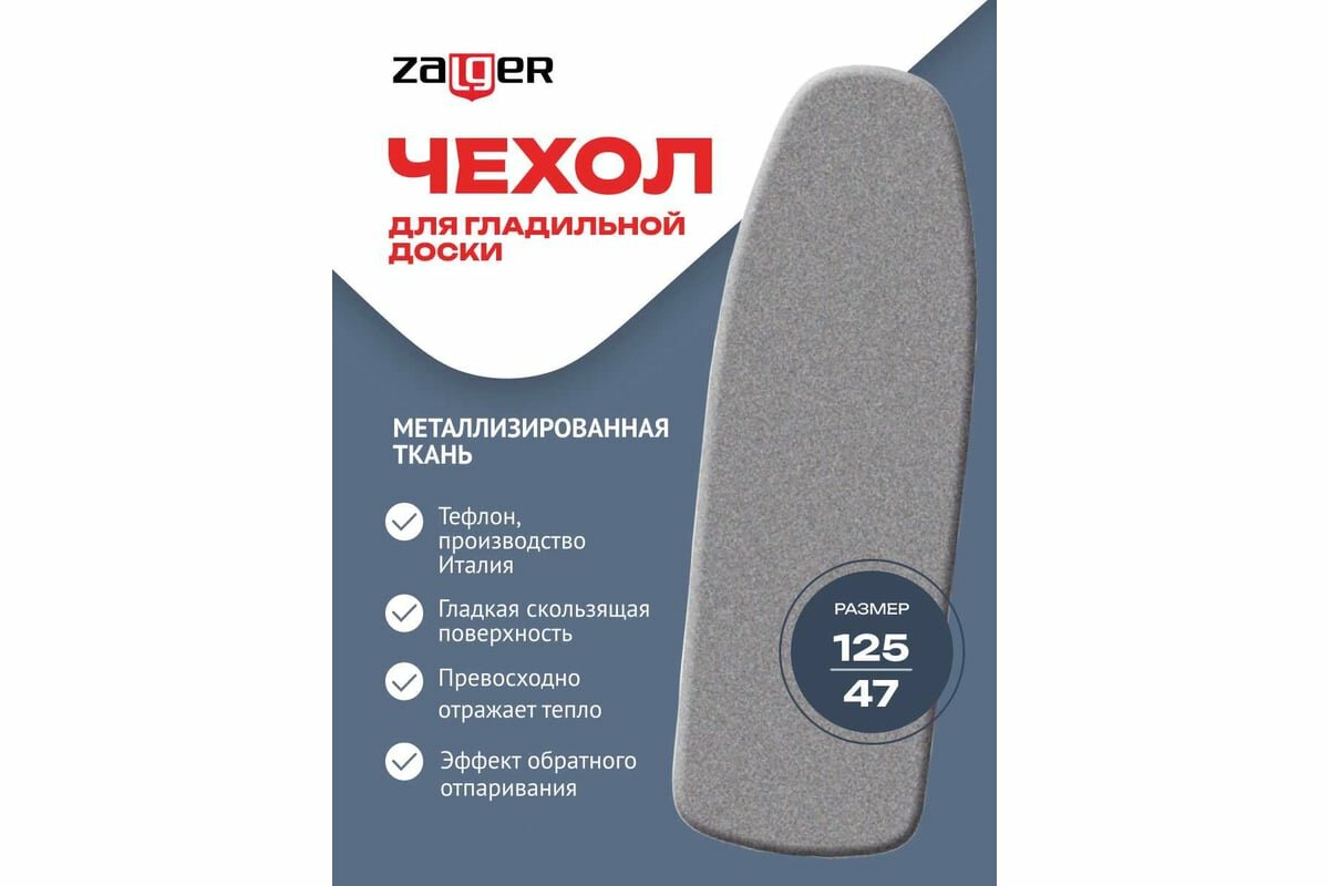 Zalger Чехол для гладильной доски 125*47см д/доски 120*42см металлизир+поролон, 520111 .