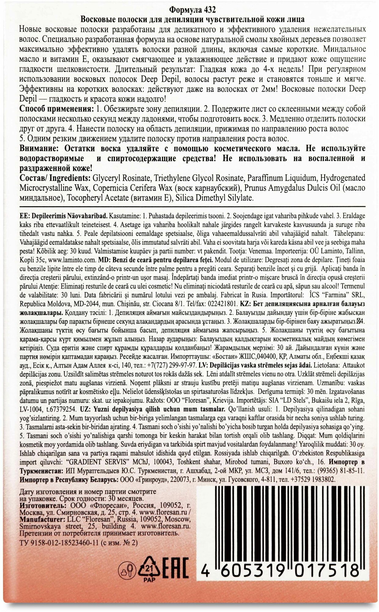 Floresan Ф-432 Восковые полоски для депиляции чувствительной кожи лица. замедляет рост волос интересное:
