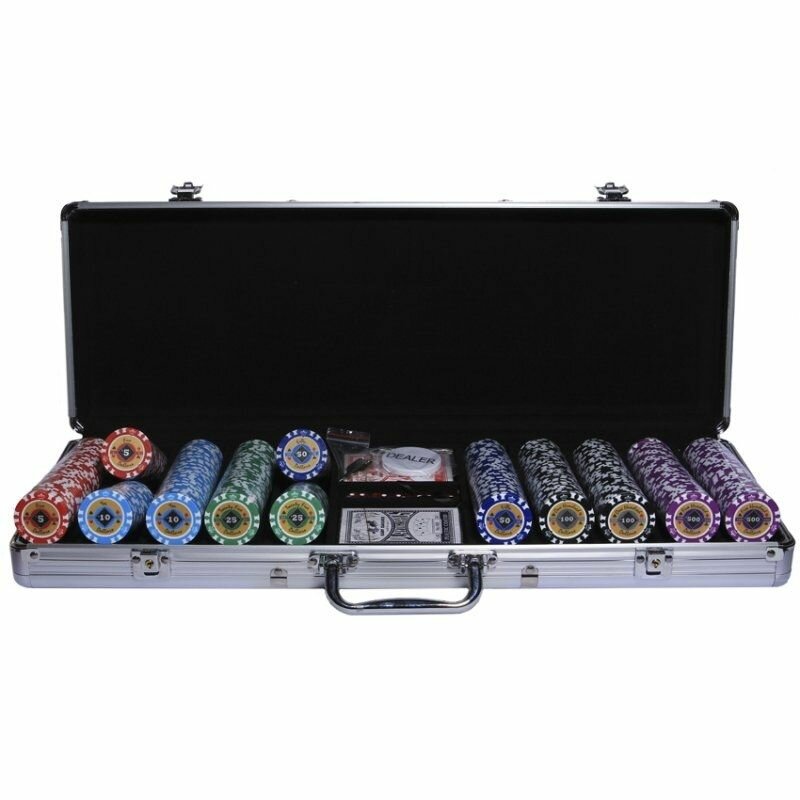 Набор для покера Crown POKER GAME в алюминиевом черном кейсе, 500 фишек + 2 колоды карт + 5 кубиков интересное: