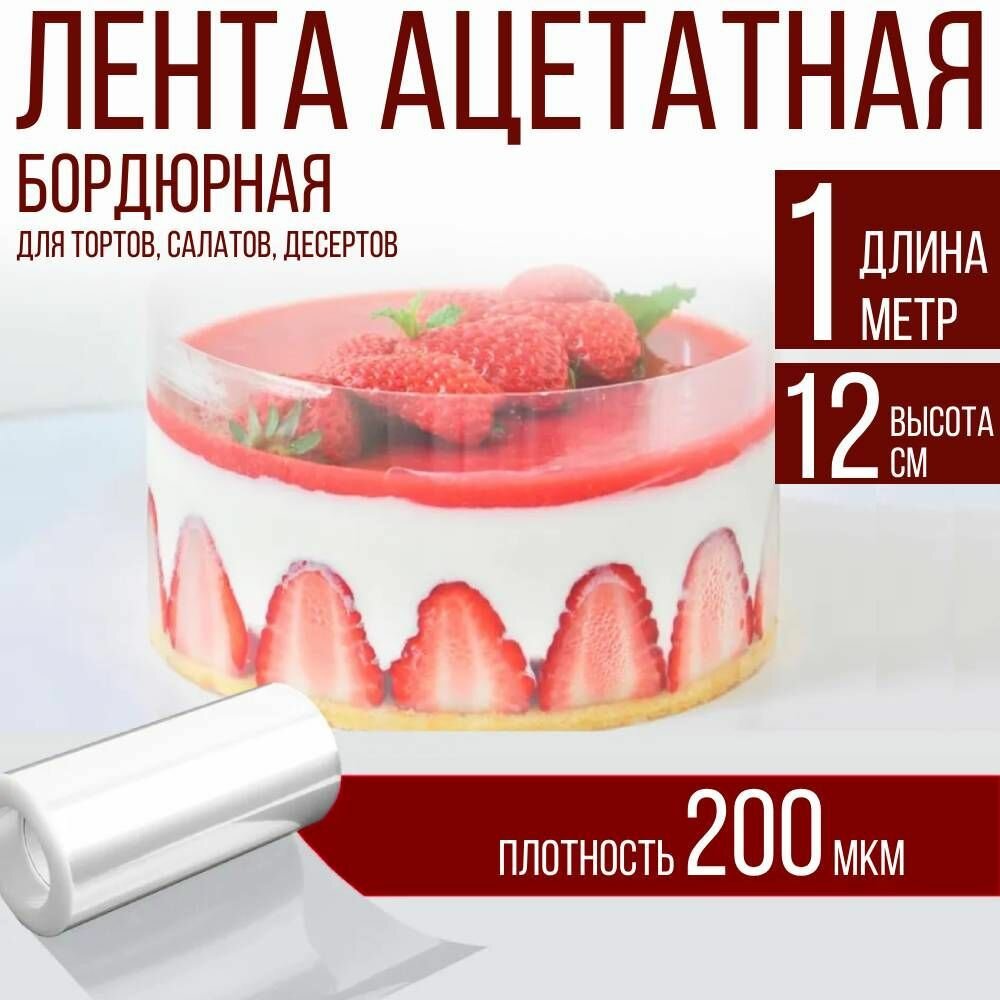 Лента ацетатная бордюрная для тортов 200 мкм, 100х12 см., 1 метр интересное: