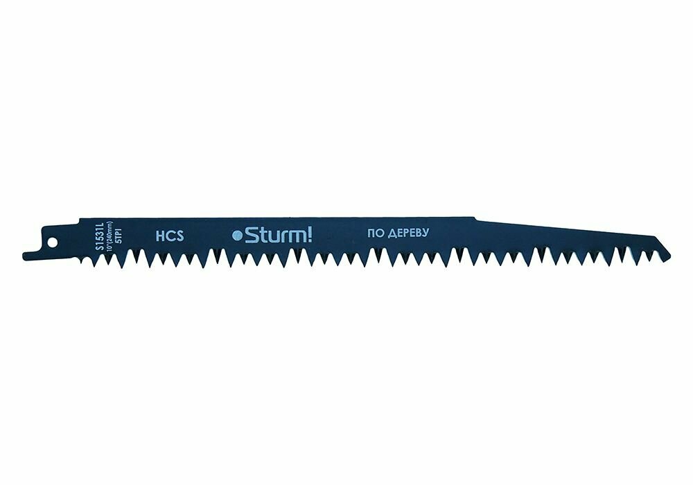 | Дополнительная информация | Полотно для сабельной пилы Sturm! 9019-03-S1531L изготовлено из высокоуглеродистой стали, что позволяет легко работать с грубой древесиной и обрезать стволы и ветки деревьев. Шлифованные и разведенные зубья |