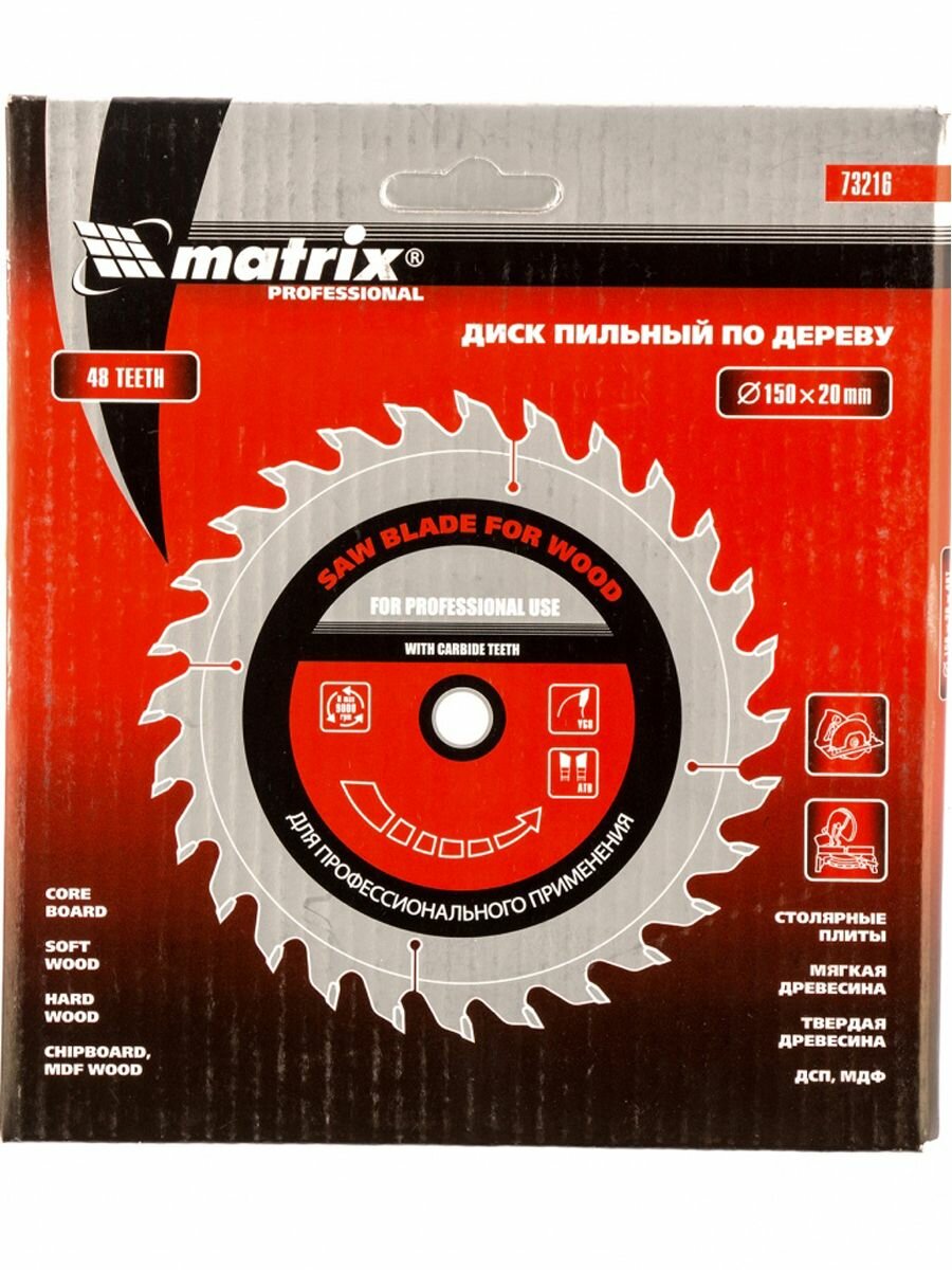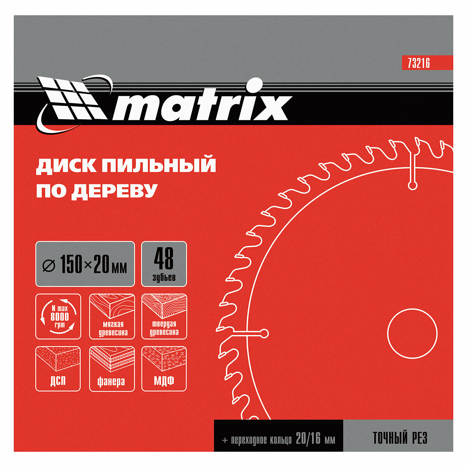Пильный диск по дереву, 150 х 20 мм, 48 зубьев, кольцо 16/20 Matrix Professional интересное: