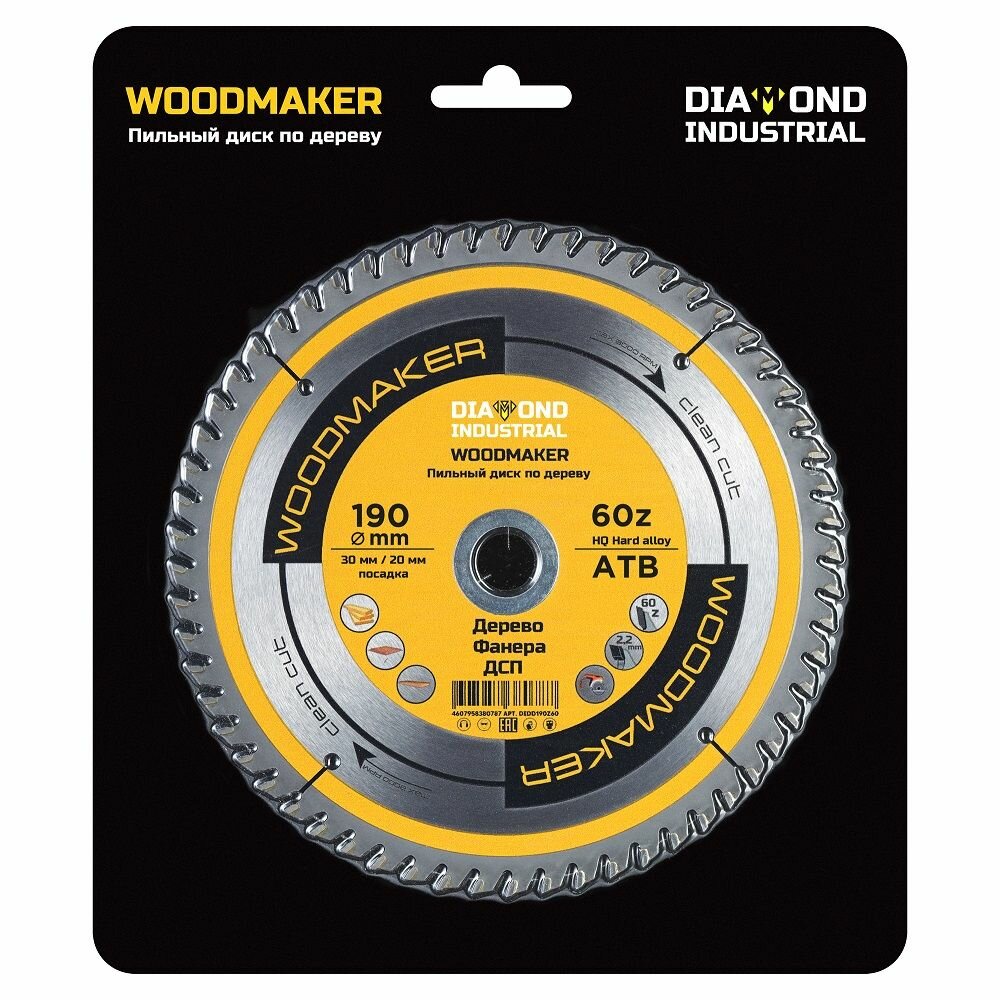 Diamond Industrial Диск пильный по дереву 210x30 мм Z=60 ATB WoodMaker DIDD210Z60