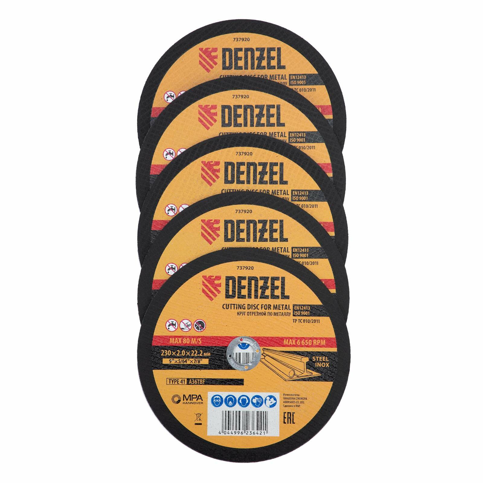 Круг отрезной по металлу, 230 х 2,0 х 22,2 мм, A36tbf, в метал.банке, 5 шт.// Denzel 737920