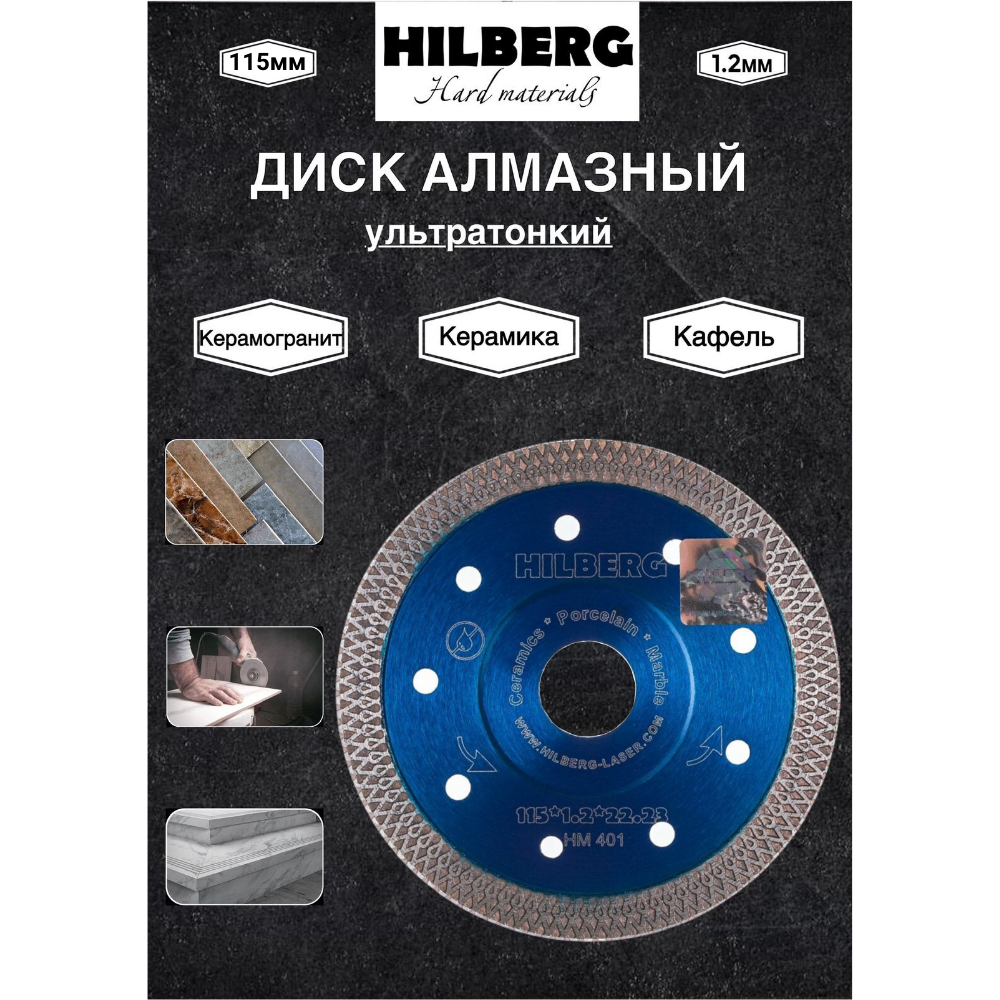 Диск алмазный по керамограниту 150*1.5*22.23 Hilberg HM403