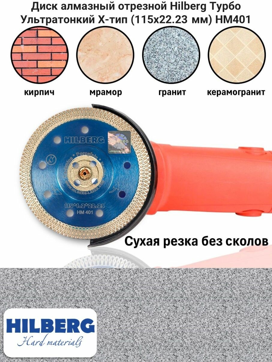 Hilberg Диск алмазный отрезной 115x22,23 Hilberg Турбо ультратонкий х-тип HM401 .