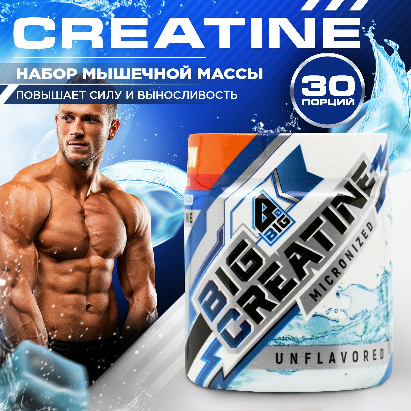 Креатин моногидрат BIGSNT BIG CREATINE для набора мышечной массы, силы и выносливости / спортивное питание, вкус Адреналин, 150 г, 30 порций