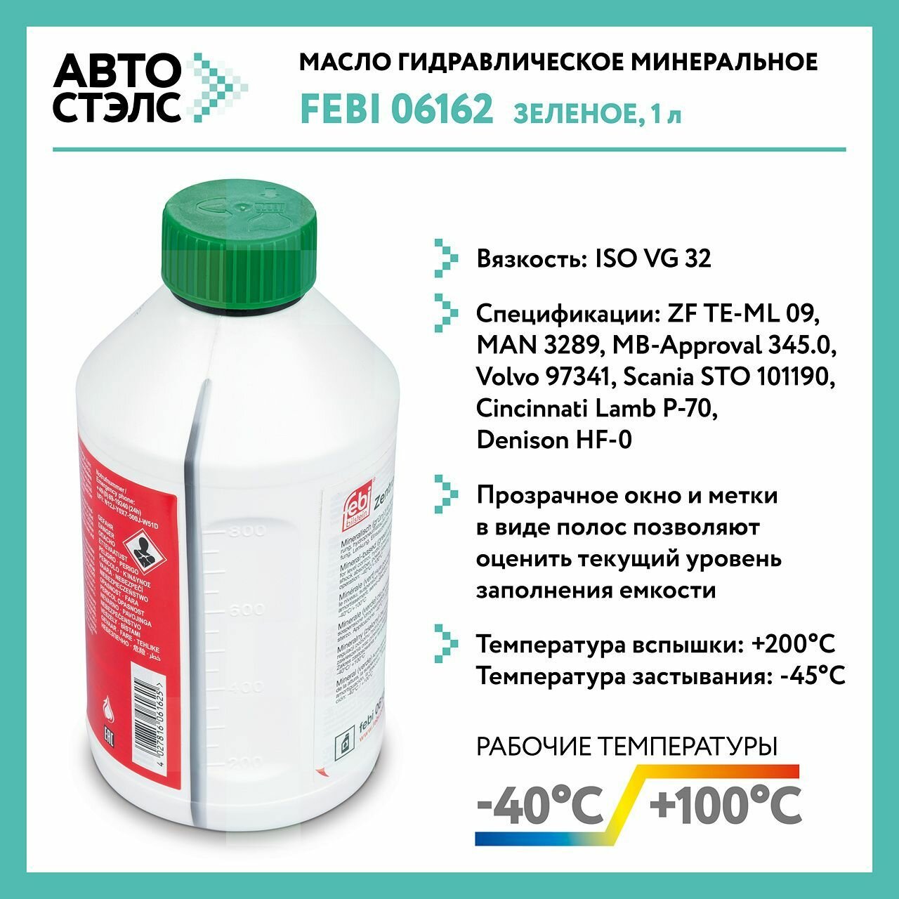 жидкость гидроусилителя febi power steering fluid -40 +100 зеленый 1 л 06162 интересное:
