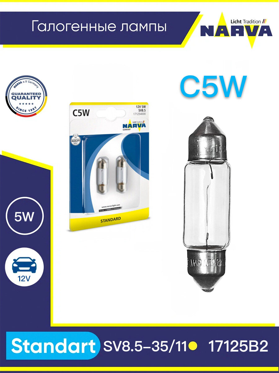 Купить Лампа C5W 5W (SV8,5-35/11) 12v- 17125 (блистер 2шт)