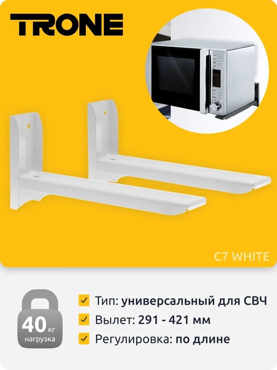 Кронштейн Trone С 7, для микроволновой печи, регулируемый, до 40 кг, 290-420 мм, металлик
