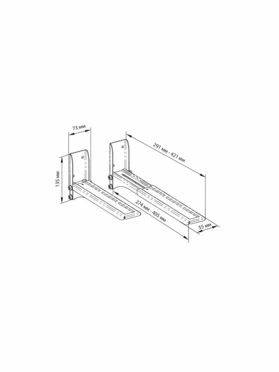 | Комплектация | Крепеж в стену , дюбеля , барашки , ключи и инструкция. В комплекте два одинаковых "Г"-образных , раздвижных кронштейна. |