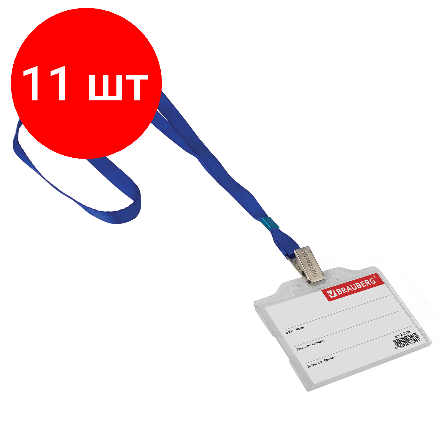 Бейдж горизонтальный Brauberg, 55х85мм, прозрачный, твердый пластик, на синей ленте 45см (232138), 10шт.