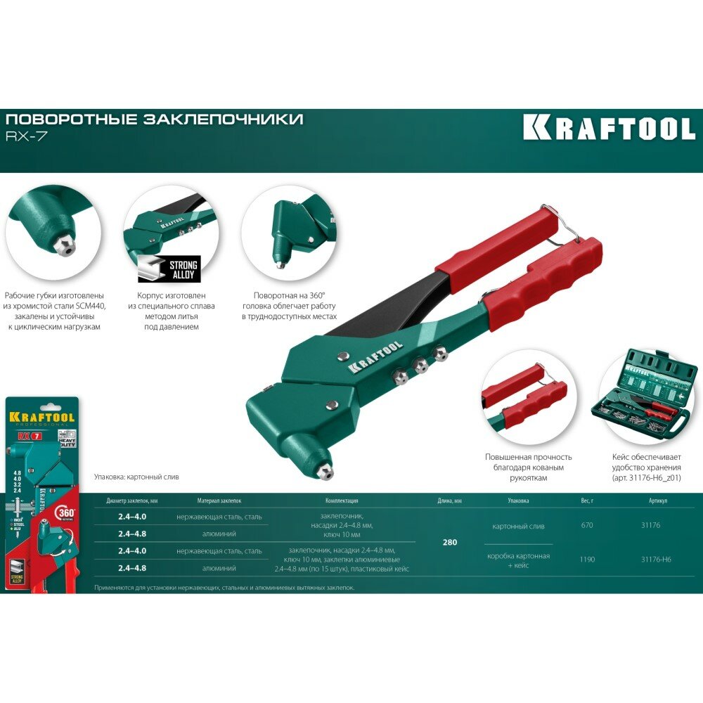 KRAFTOOL RX-7 поворотный заклепочник 360° в кейсе