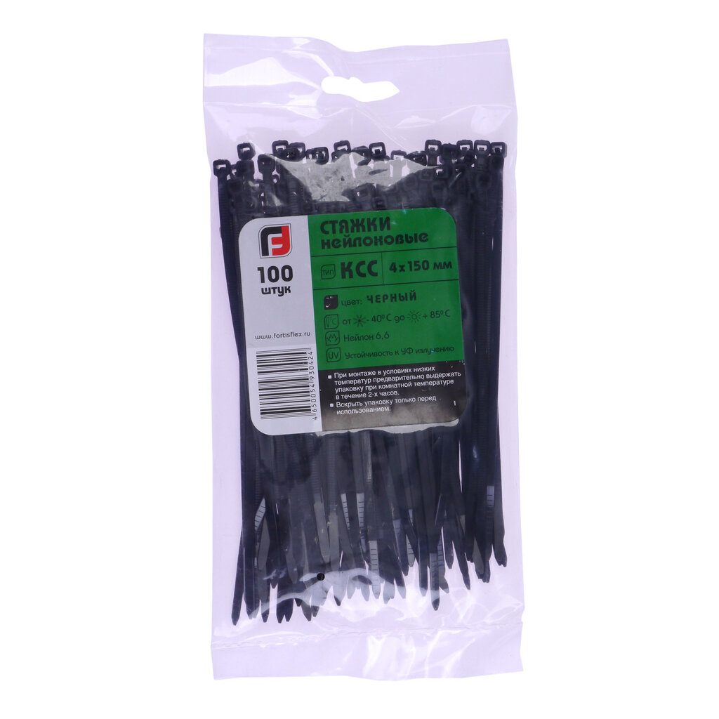 Стяжки нейлоновые Fortisflex КСС 4х150, черные, 49410, упаковка 100 шт.