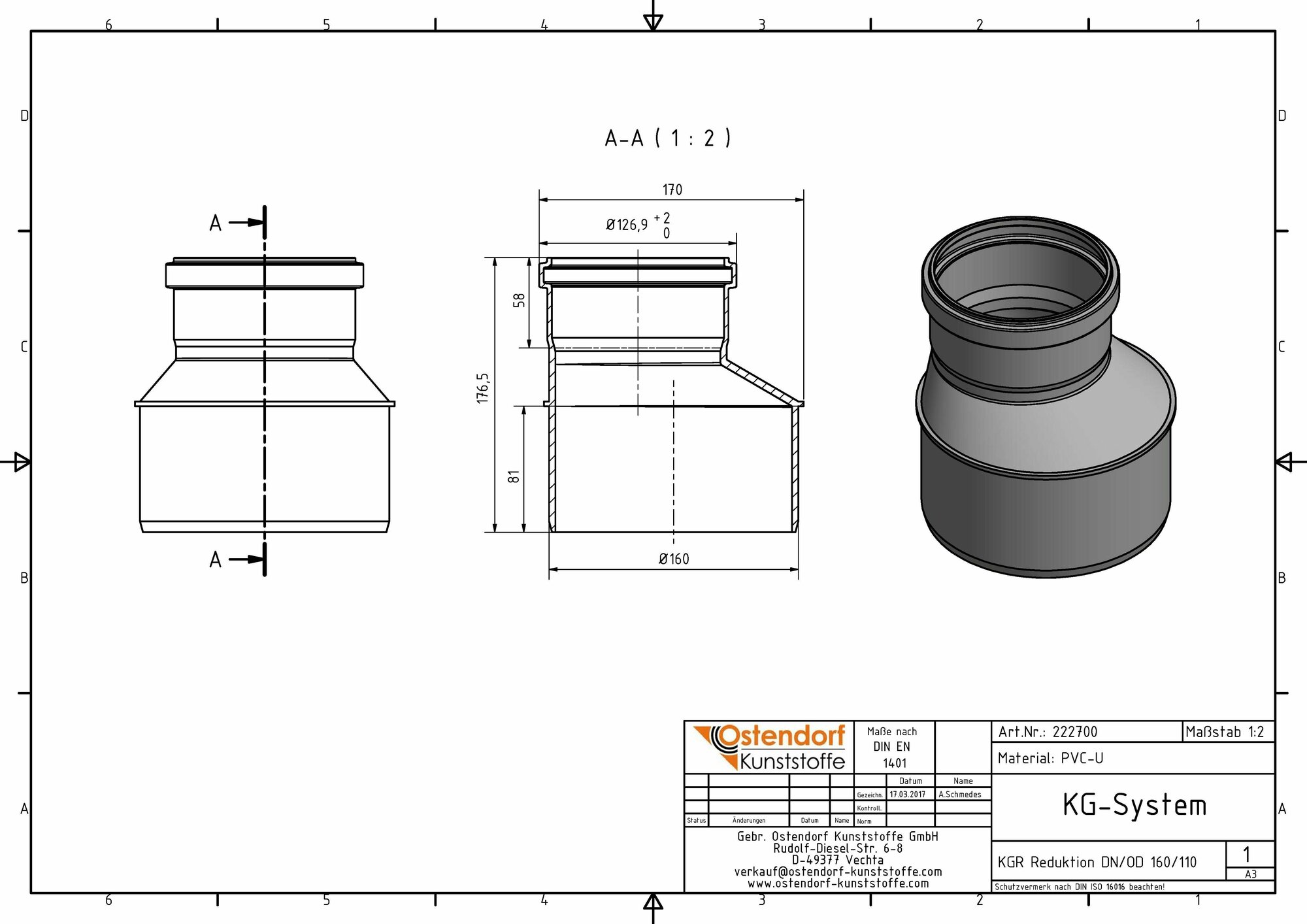 Переход эксцентрический (редукция) Ostendorf KGR 160/110 мм канализационный арт. 222700