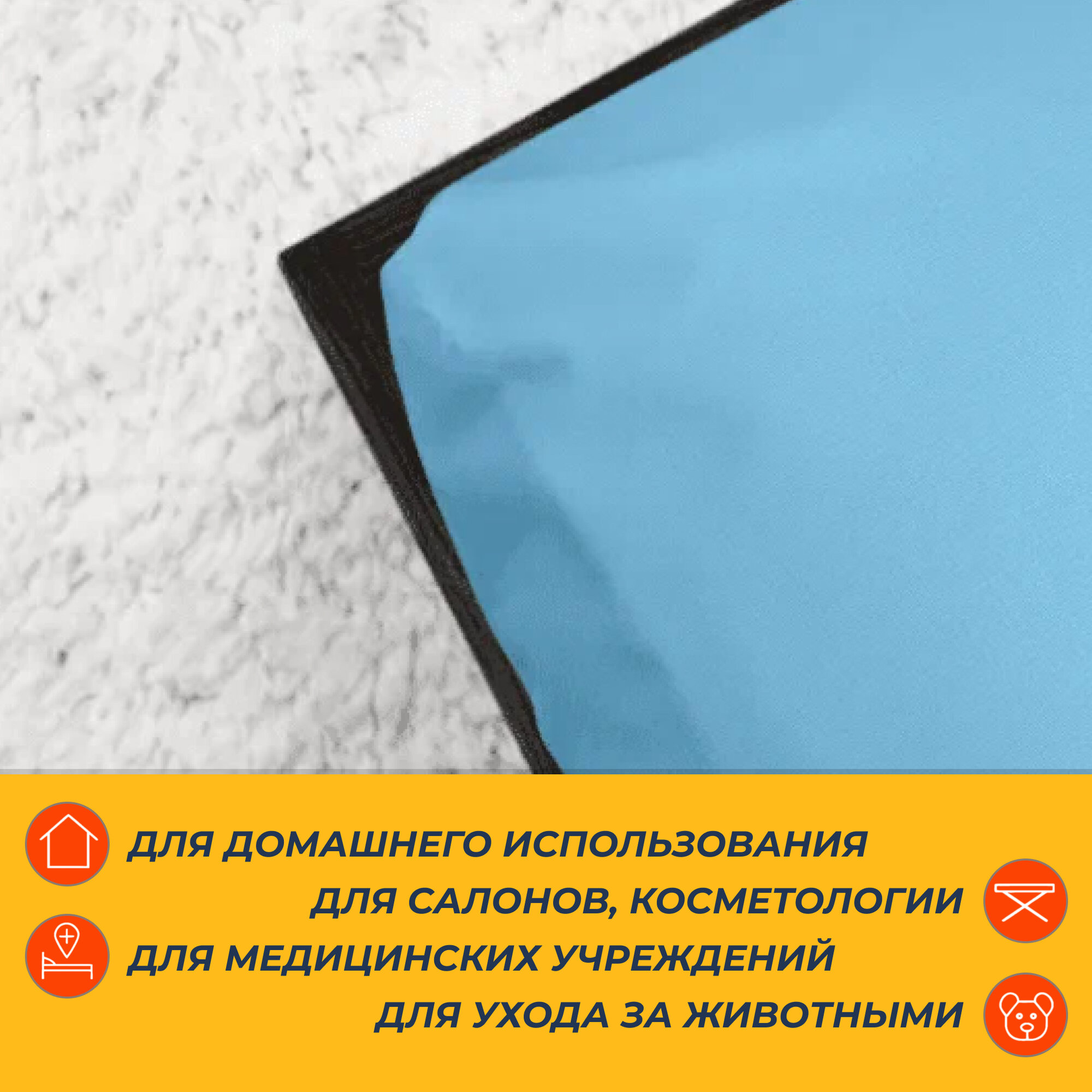Клеенка медицинская подкладная 70х100 см, голубая / Polikate / для лежачих больных / многоразовая / непромокаемая