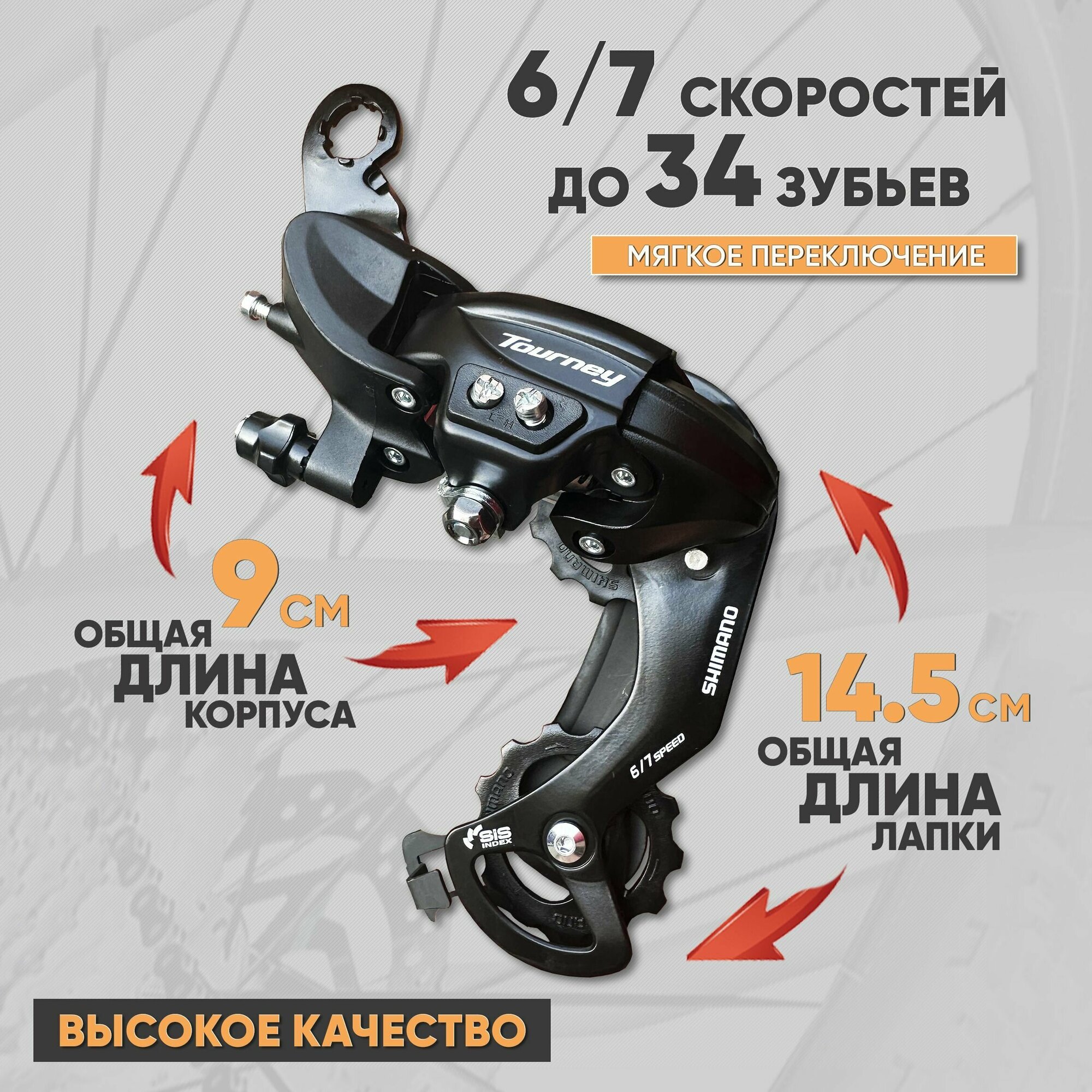 Переключатель скоростей задний, Shimano RD-TY300, серия Tourney, 6-7 скоростей, крепление на ось, черный интересное: