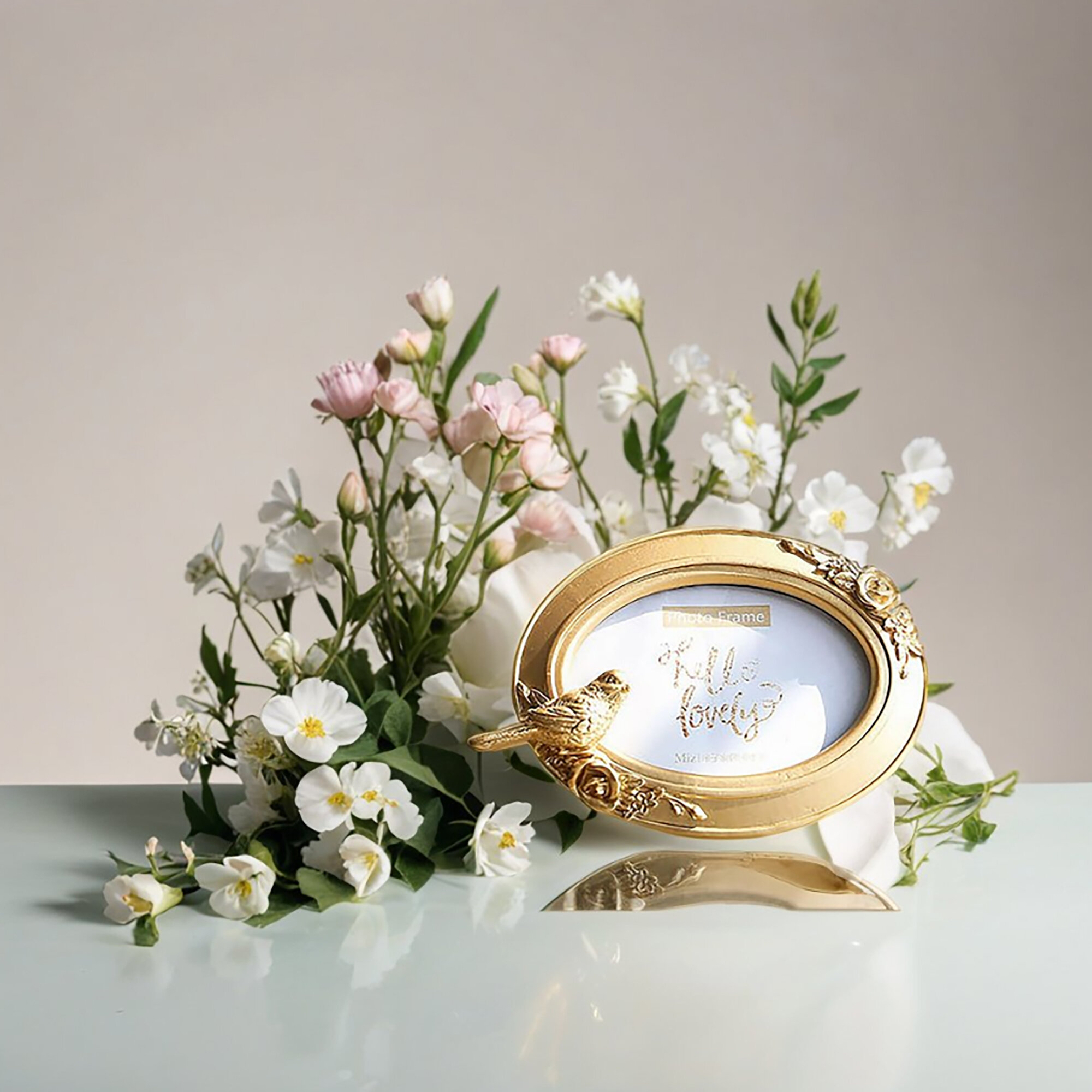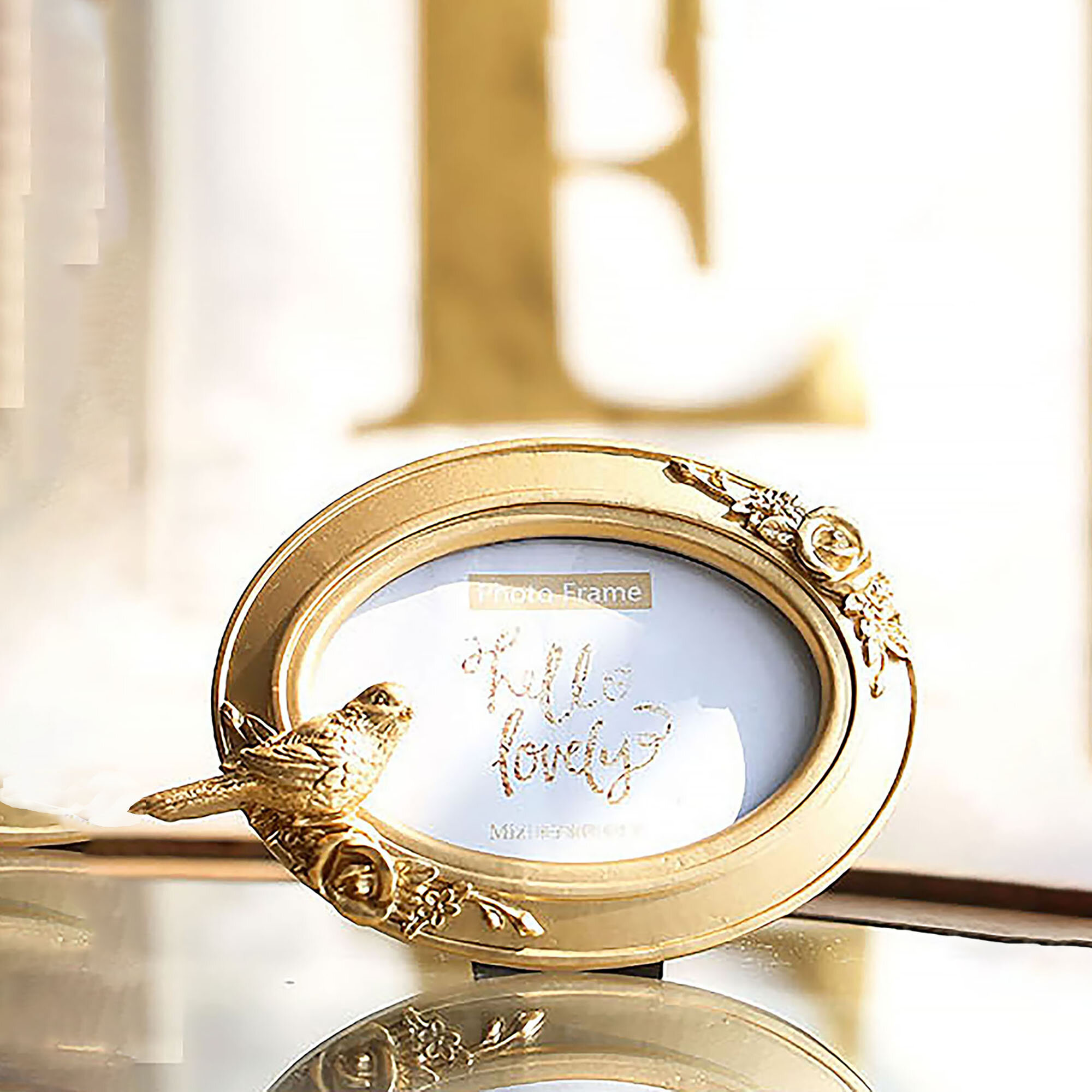 "Рамка для фотографии" 10х10, настольная, золото / Фоторамка Птицы