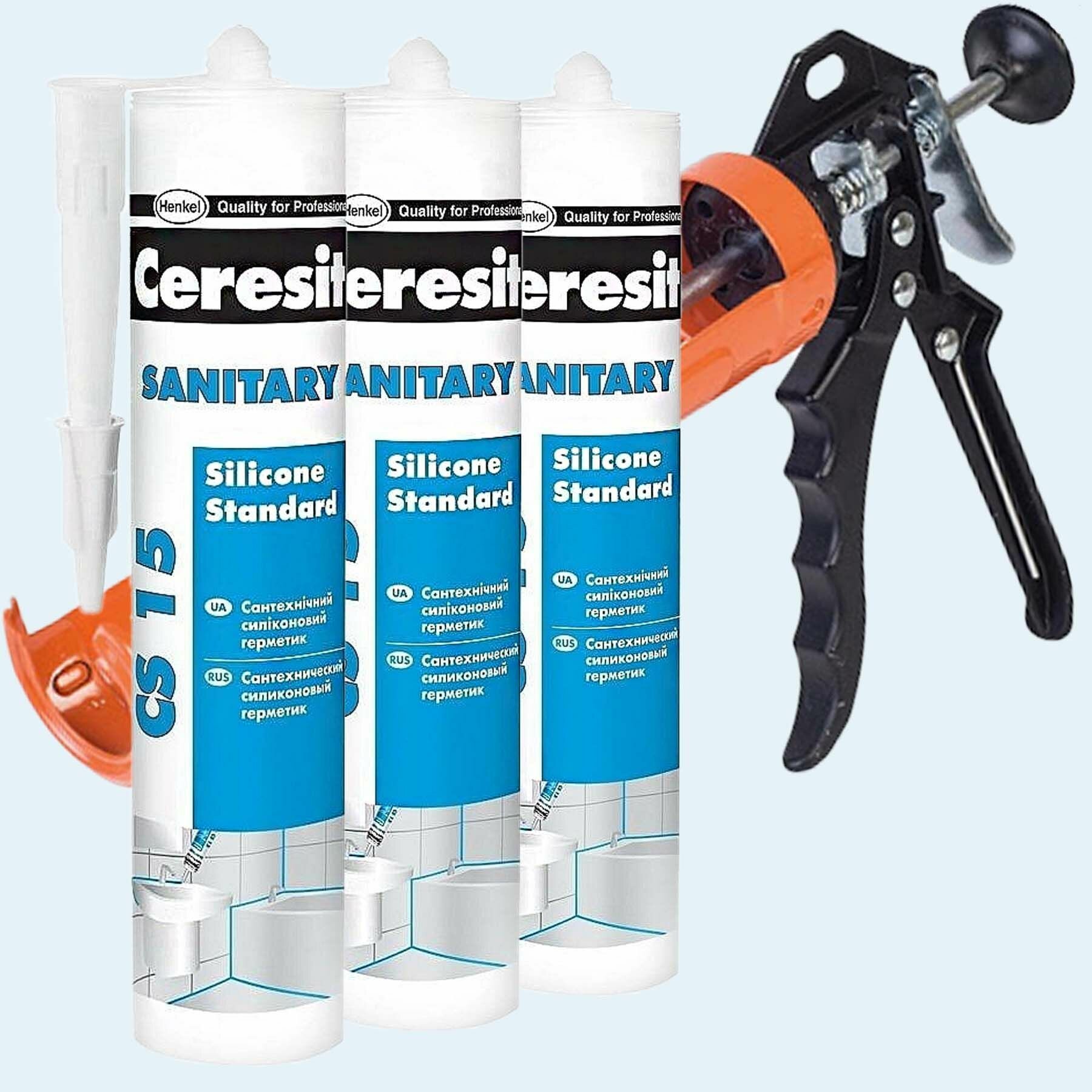 Герметик силиконовый санитарный Церезит (Ceresit) CS 15, 280 мл, прозрачный