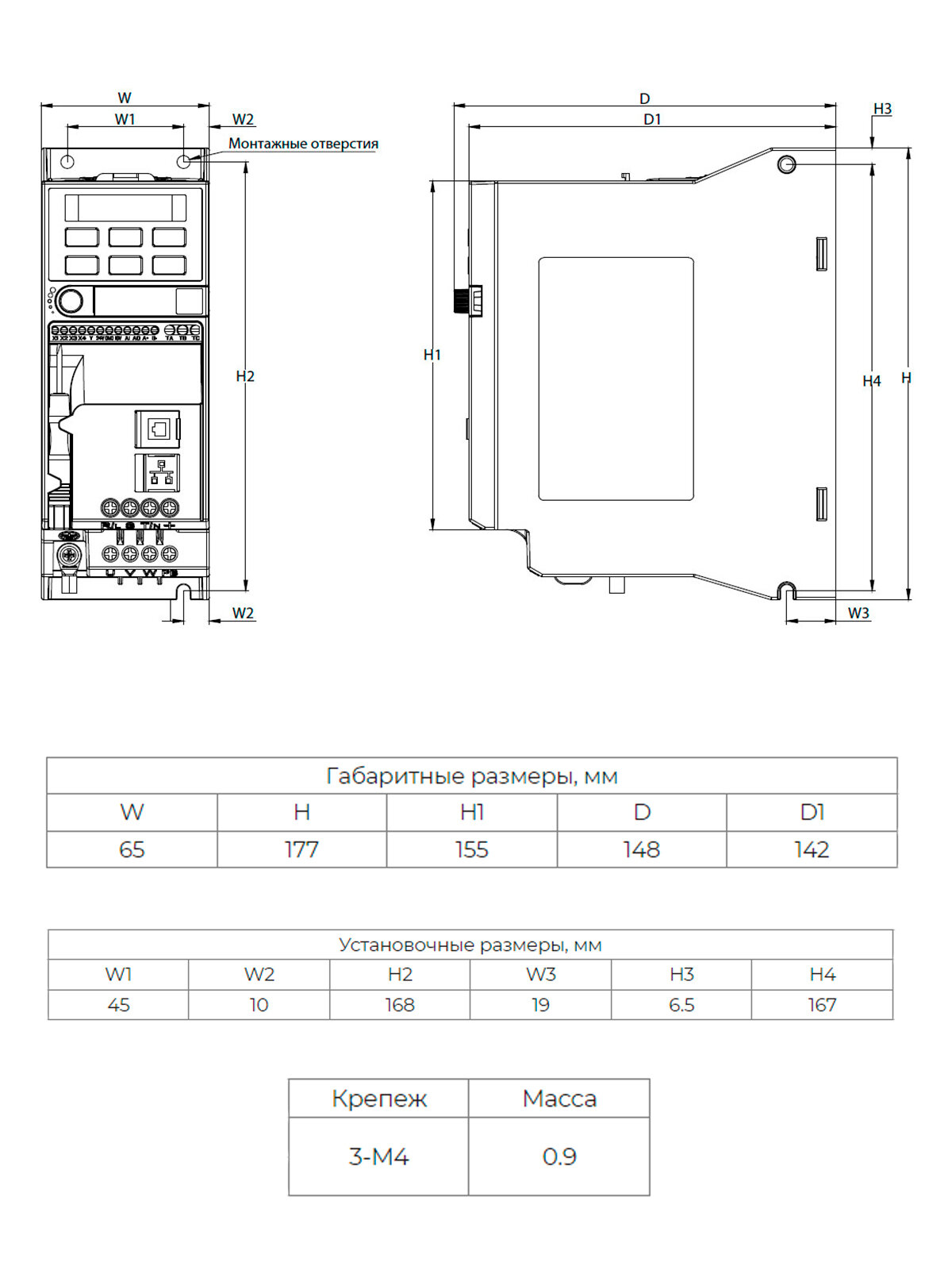 | Подключение | RS-485 / аналоговый вход / выход реле |