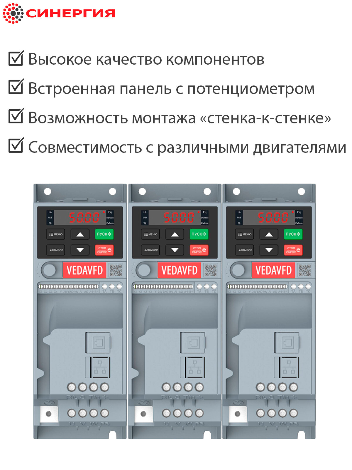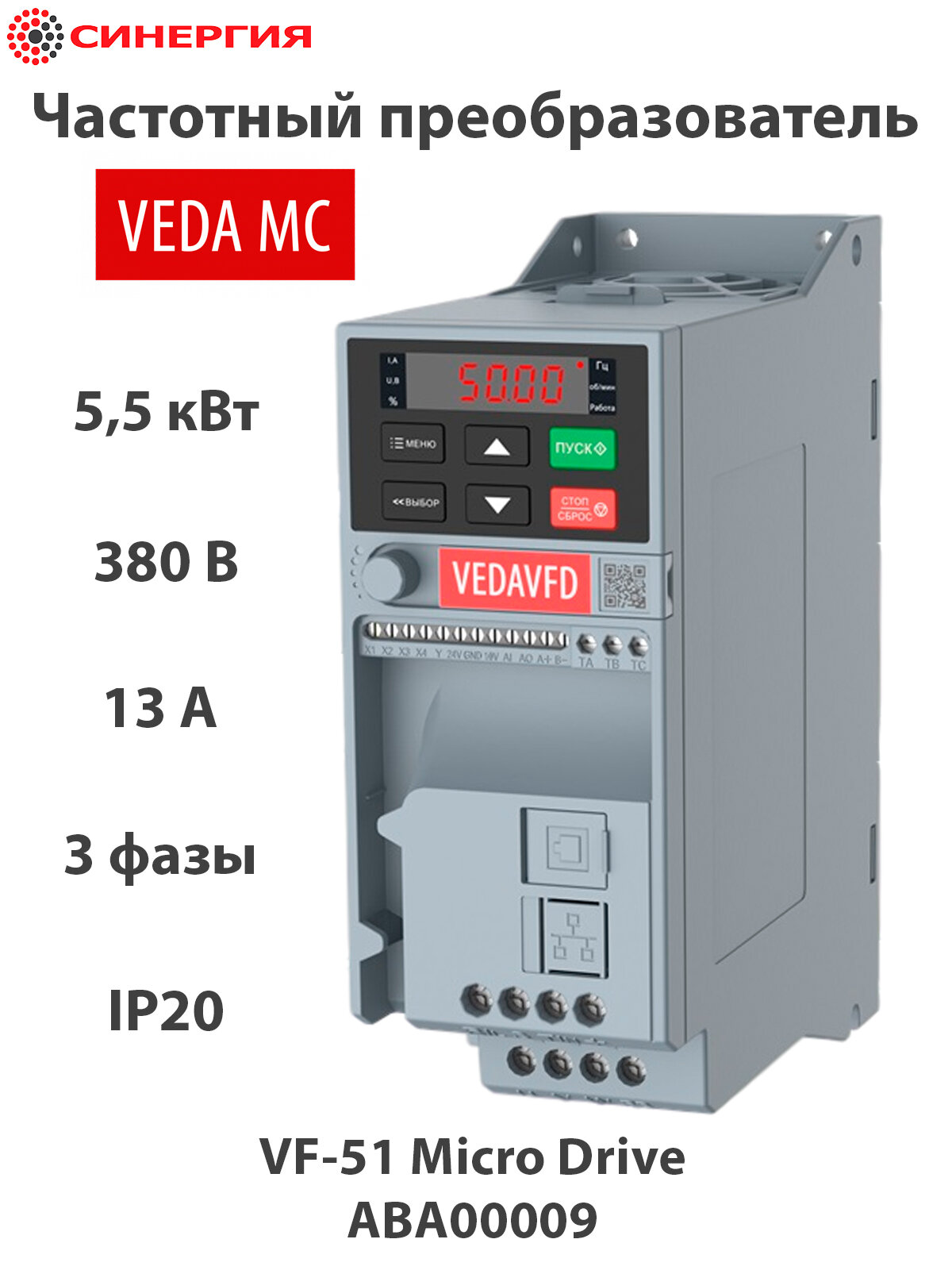 Преобразователь частоты VF-51-P5K5-0013-T4-E20-B-H вход. 380В выход. 5.5кВт выход. 13А | код ABA00009 | VEDA ( 1шт. ) интересное: