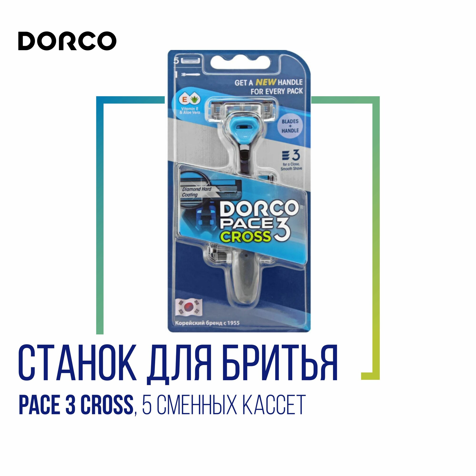 Станок для бритья Dorco Pace 3 Cross 5 сменных кассет