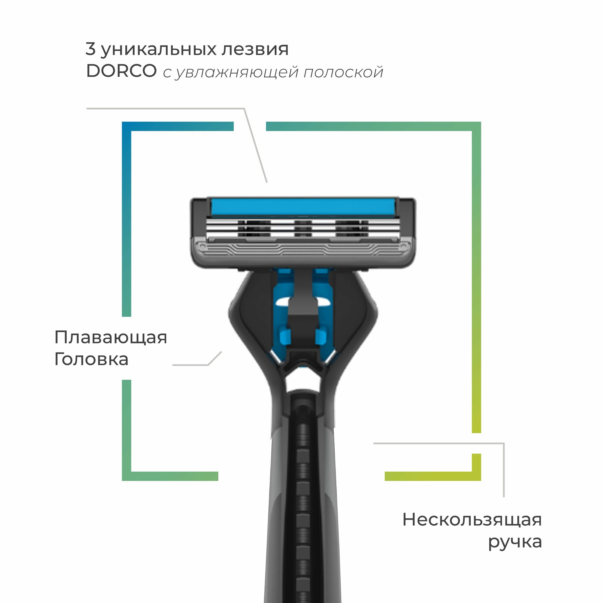 Бритва Dorco CROSS3, 3 лезвия, крепление CROSS, плав. головка, увл. полоса (1 станок, 5 кассет)