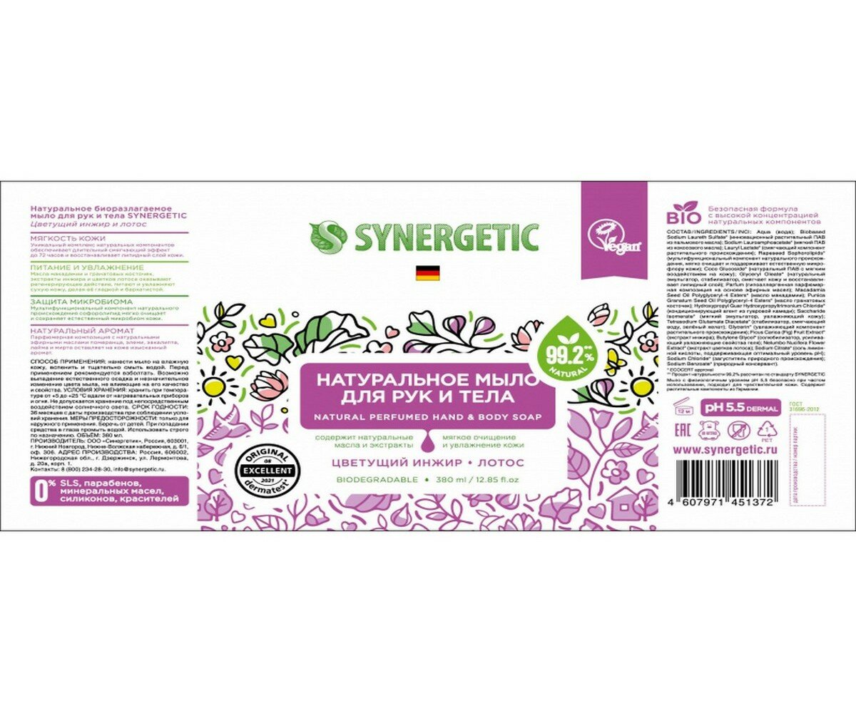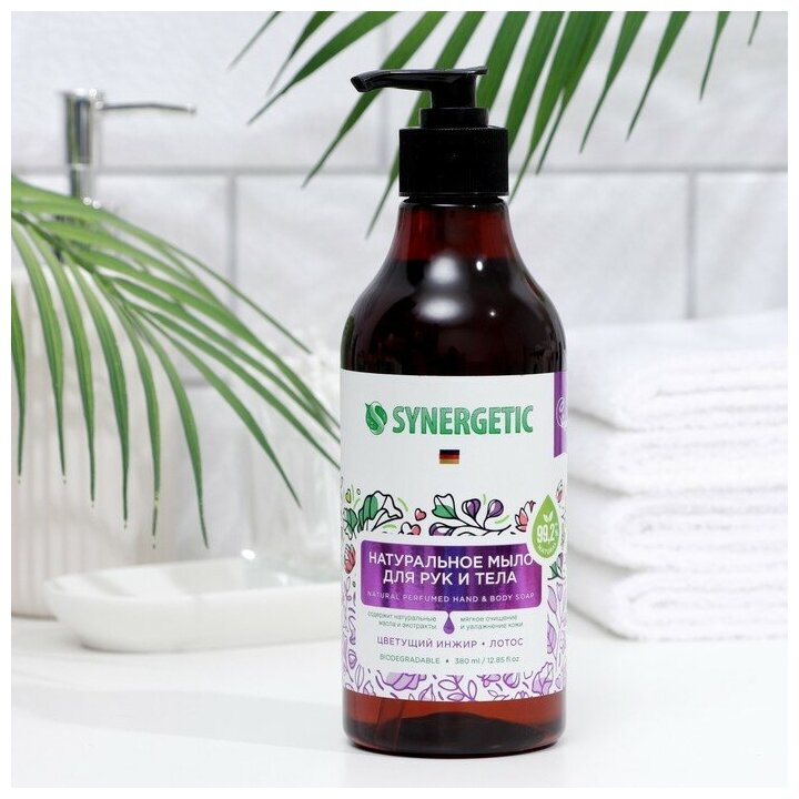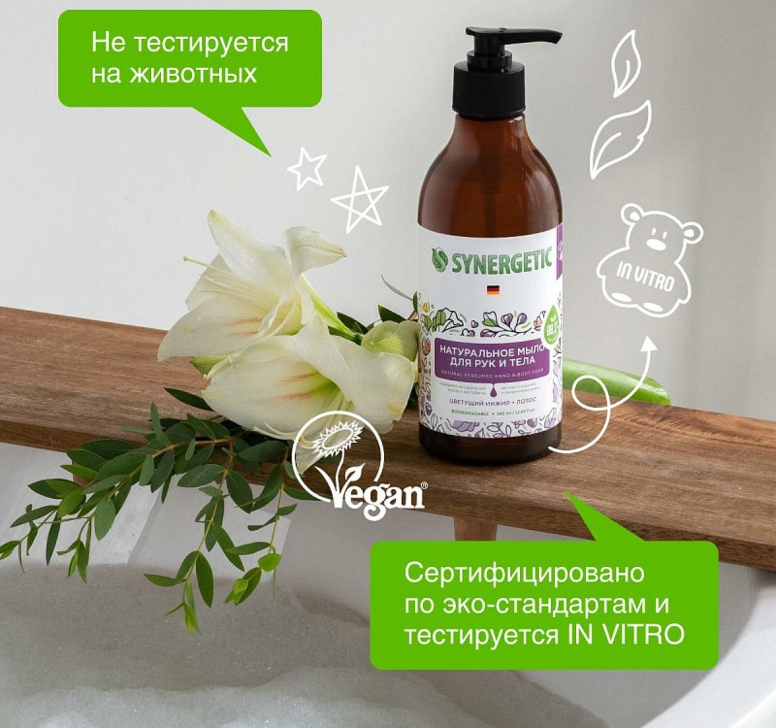 Купить Synergetic Жидкое мыло Synergetic "Цветущий инжир и лотос", для рук и тела, 380 мл