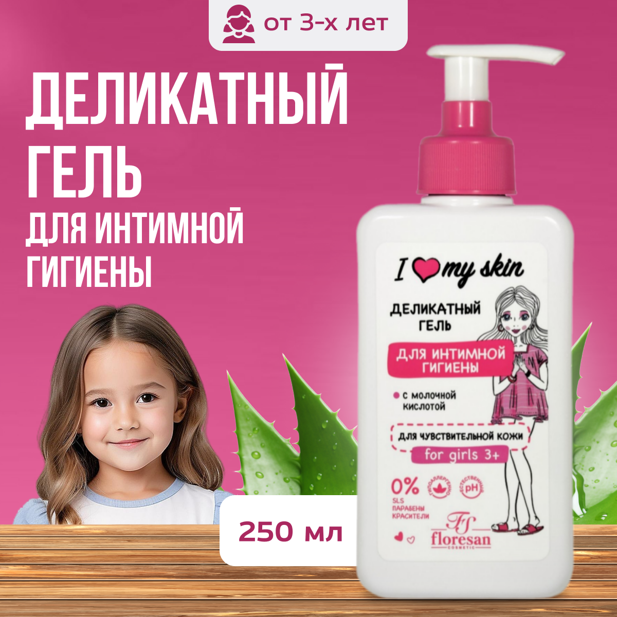 Floresan деликатный гель для интимной гигиены for girls, 250 мл
