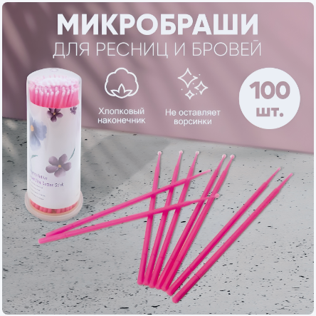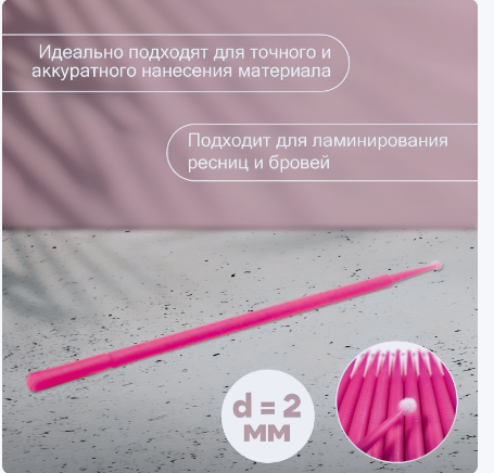 Микробраши одноразовые 2мм для для наращивания, ламинирования ресниц и бровей,100шт, розовые Lian Beauty Accessories