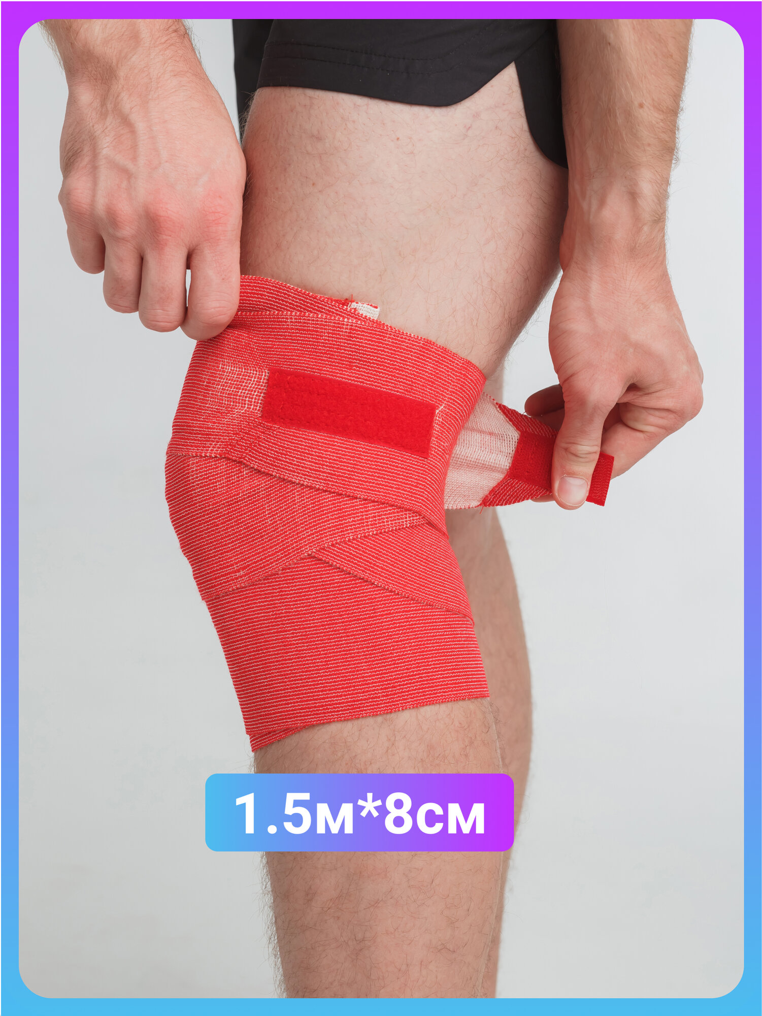 Бинт эластичный спортивный медицинский 1,5м x 8см, красный. С застежкой велкро. интересное: