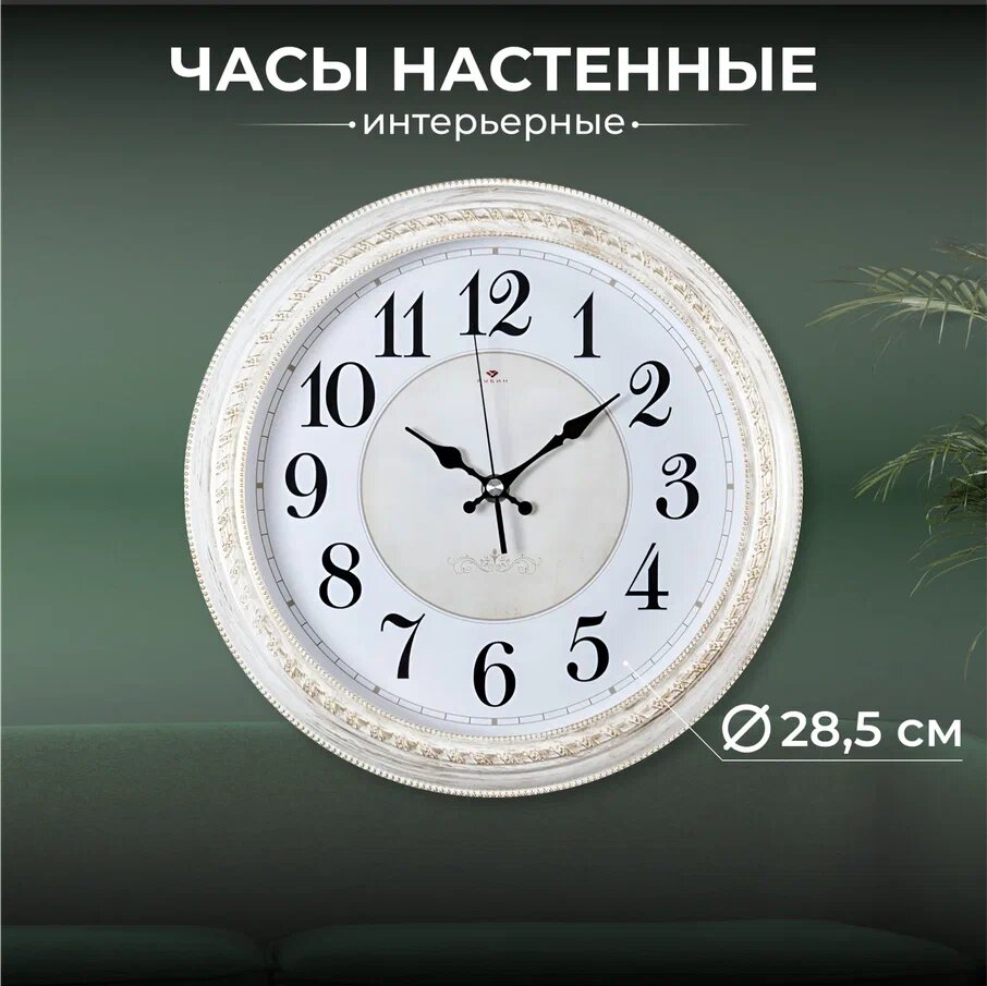 Часы настенные кварцевые Рубин Классика 2950-107, белый/золото интересное: