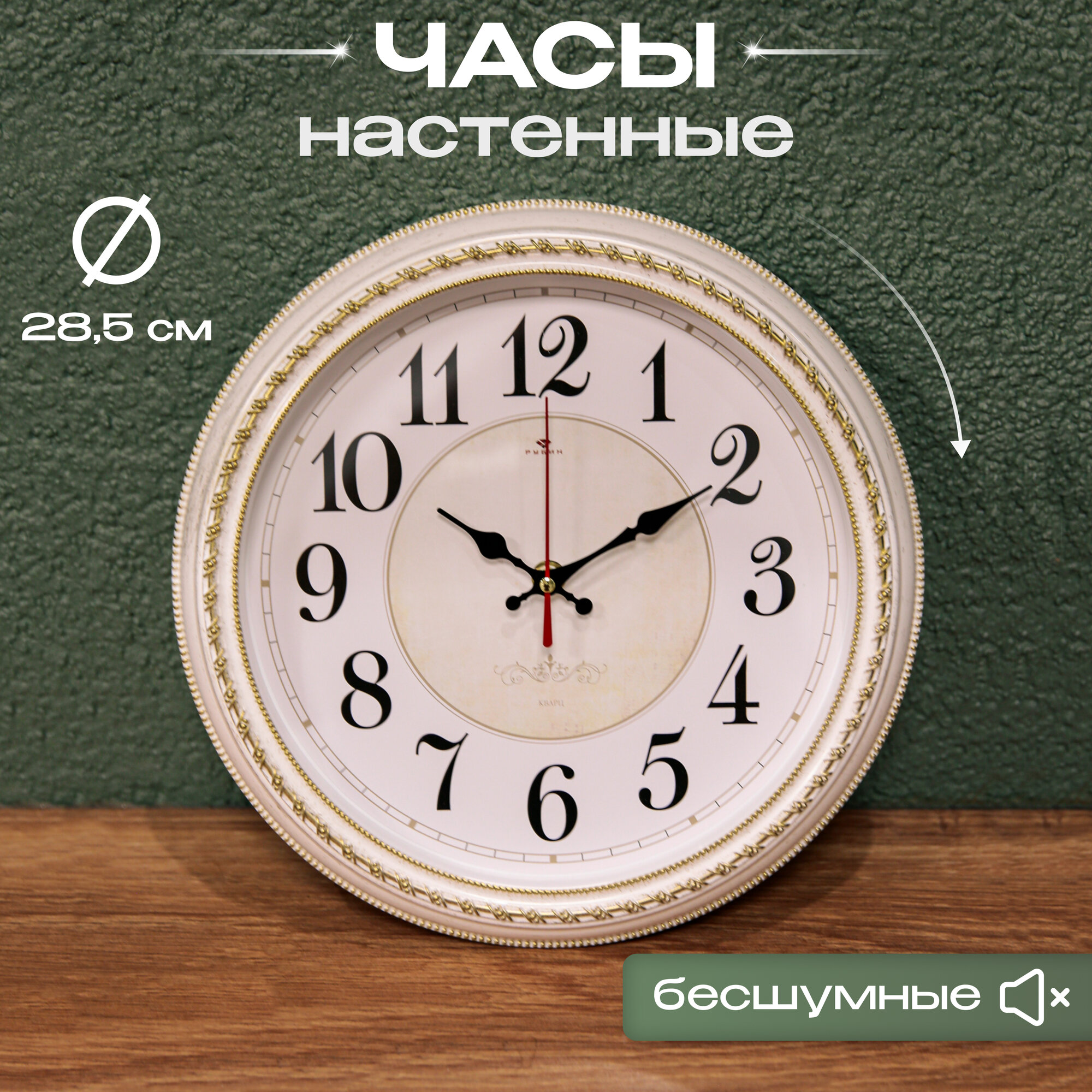 Часы настенные бесшумные Рубин, D 28,5 см, белые с золотом, "Классика"