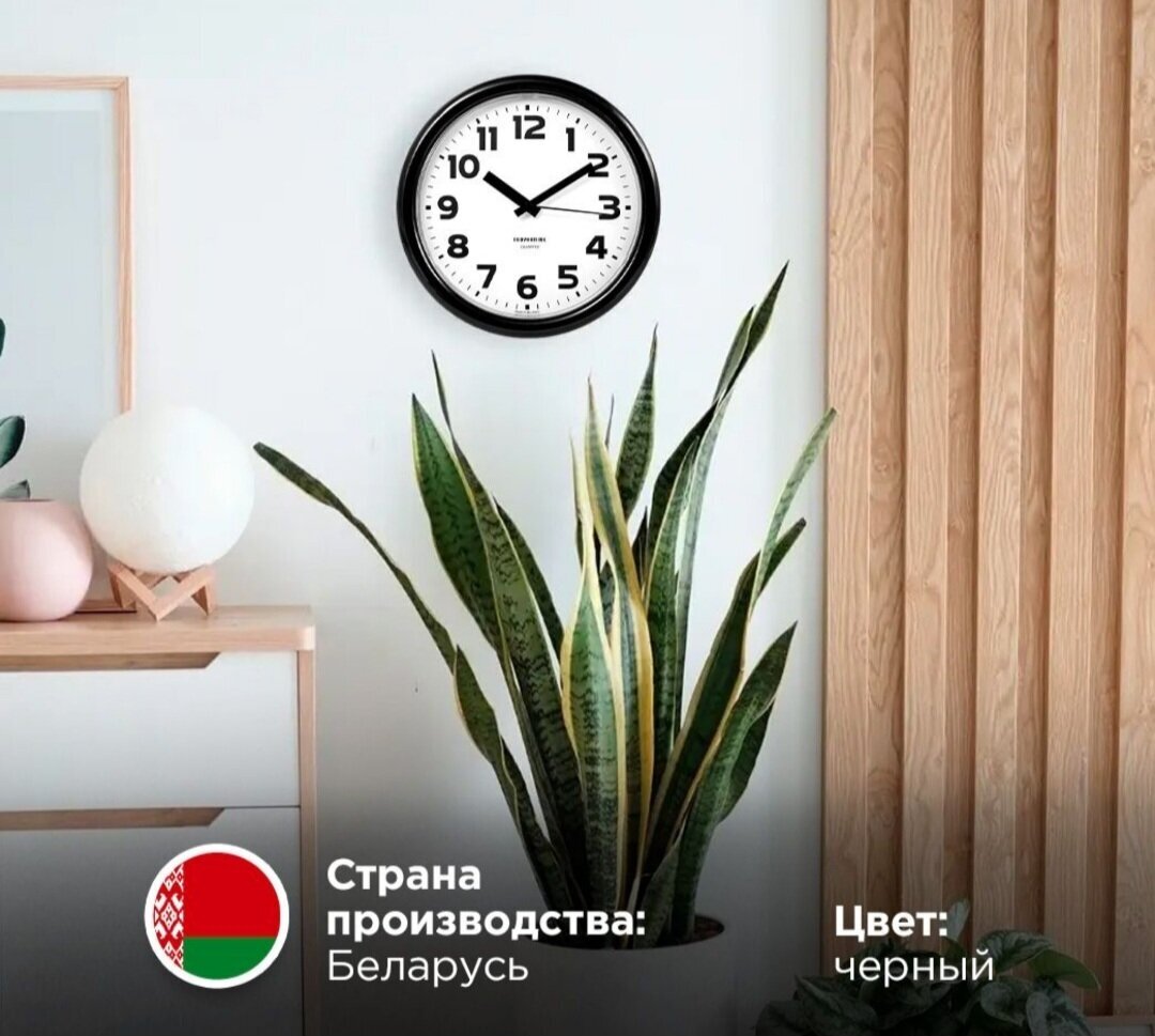 Часы настенные Troyka ход плавный, круглые, 24х24х3 см, черная рамка (21200216) интересное: