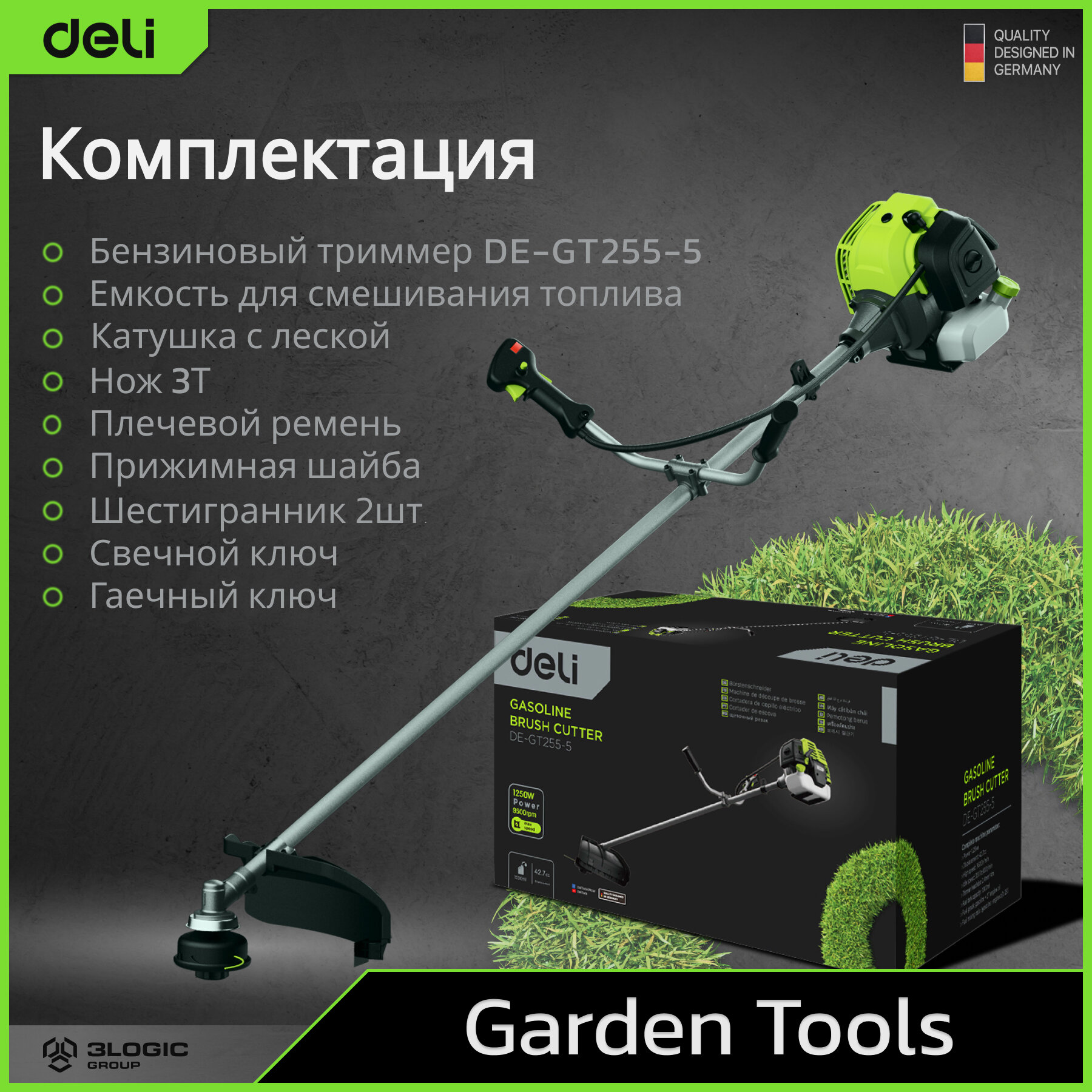 DELI Бензиновый триммер DE-GT255-5 (1250Вт/ 1,8л.с, 43 см3, бак 1,2л) 145418 интересное: