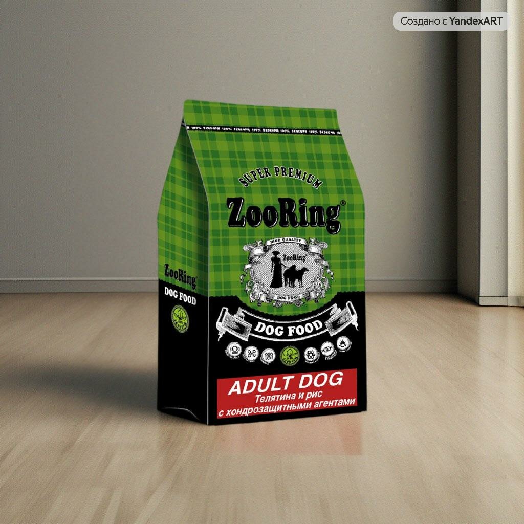 Сухой корм с хондропротектерами ZooRing Adult Dog 25/13 телятина и рис для собак, 2кг