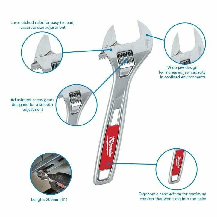 Разводной усиленный ключ MILWAUKEE 200 мм 48227508 интересное: