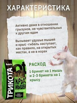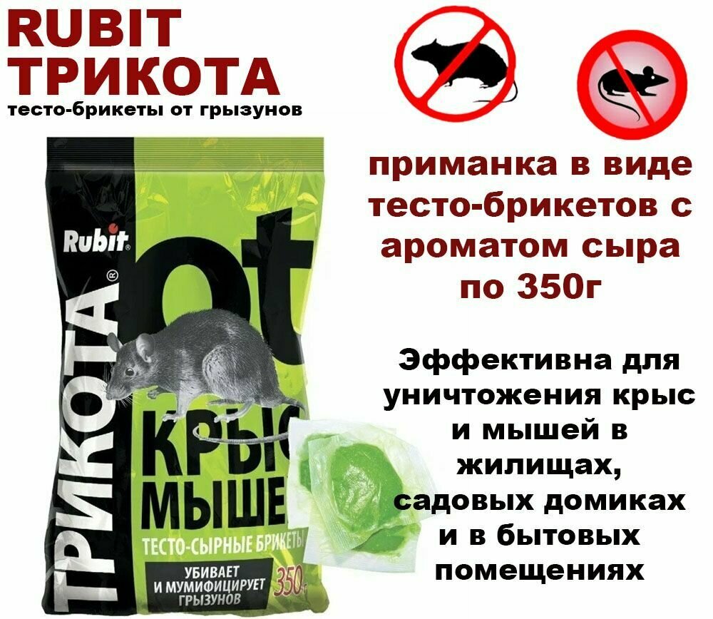 Rubit "Трикота" - отрава приманка для крыс и мышей яд, тесто-сырные брикеты от грызунов 350 гр интересное: