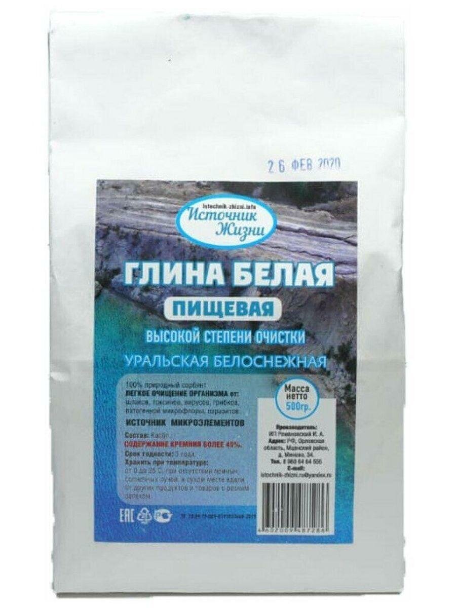 Купить Глина белая Пищевая, для очищения, "Источник жизни", 1 упаковка 500 грамм