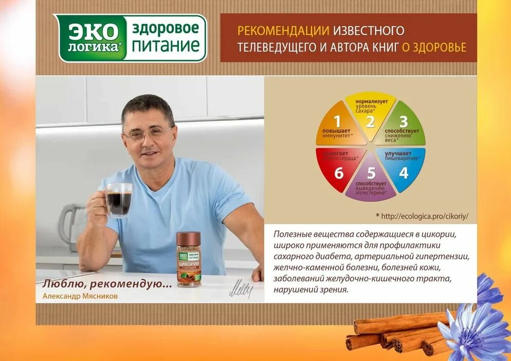 Цикорий сублимированный Экологика с корицей, 85 гр интересное: