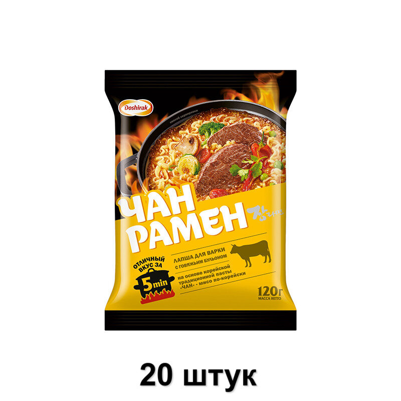 Лапша для варки Доширак Чан Рамен со вкусом говядины 20 шт по 120 гр. интересное: