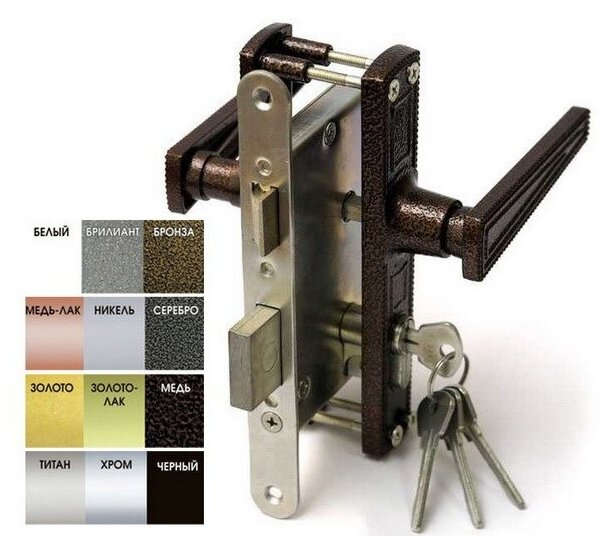 Замок врезной цилиндровый с защёлкой в комплекте с ручкой Зенит (замки) зенит ЗВ4-3.01 (бронза), 4 кл.