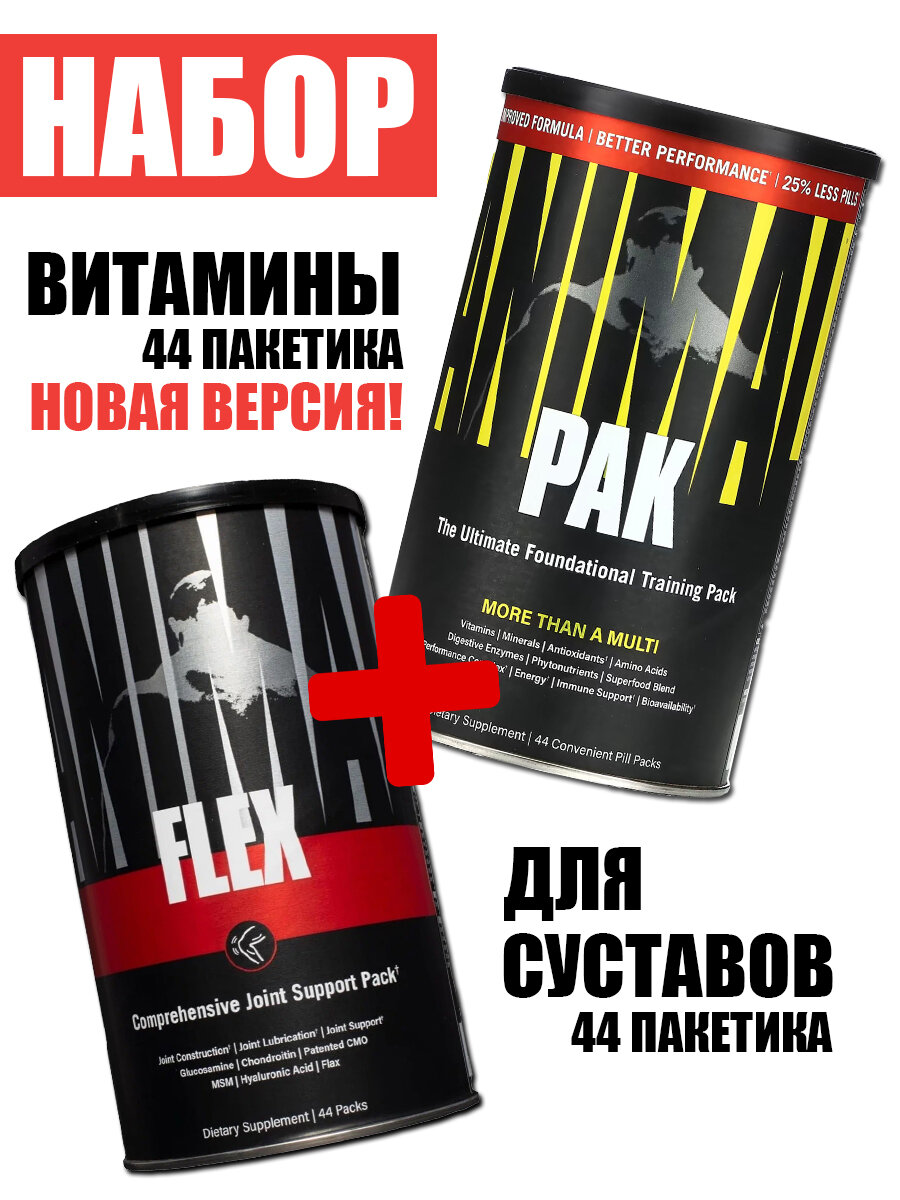Купить Для суставов + витамины Universal Nutrition Animal Flex + Animal Pak, 44/44 пак