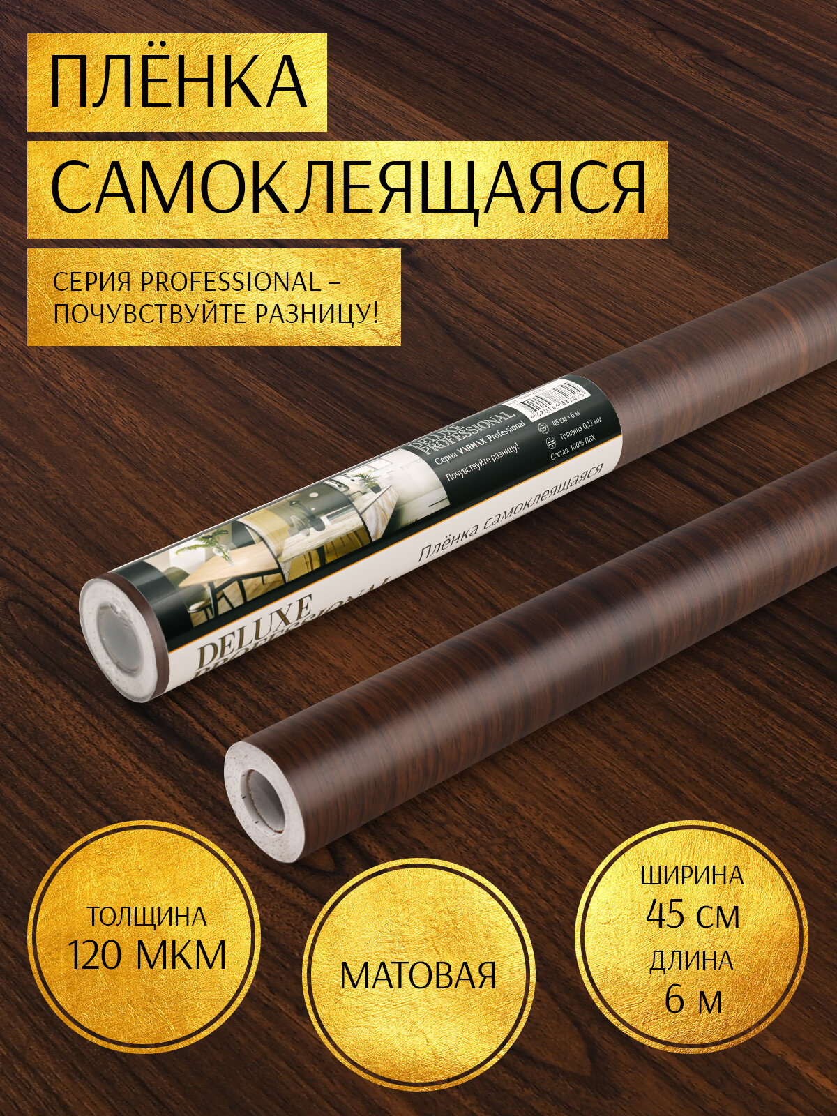 Купить Пленка самоклеящаяся "Deluxe Professional" 45см*6м (каштан японский) 12012036