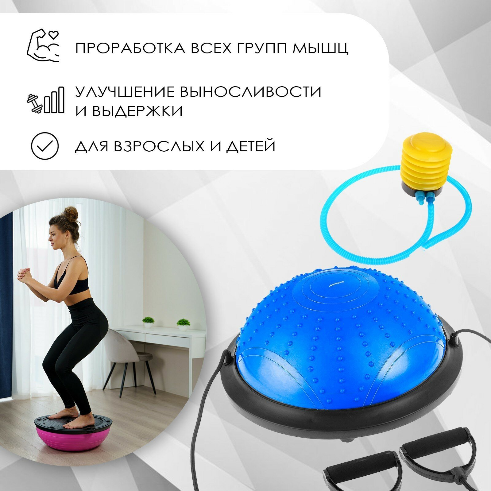 Полусфера BOSU гимнастическая ONLYTOP, массажная, с насосом, 46х20 см, цвет синий